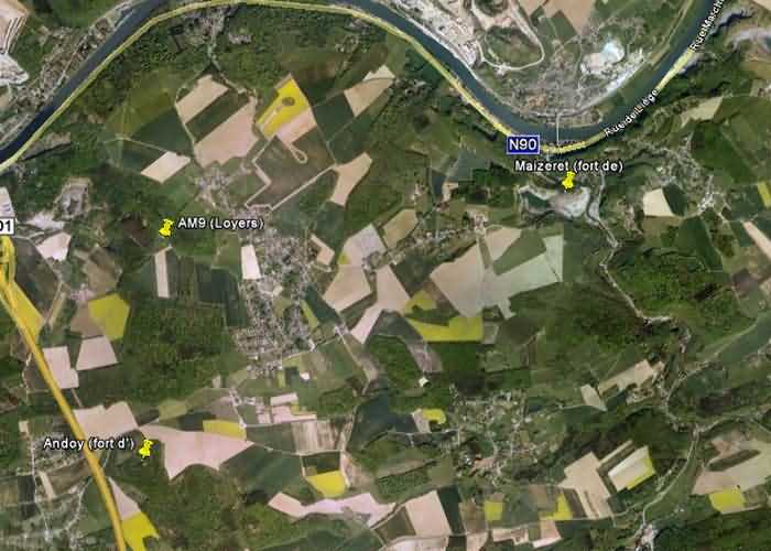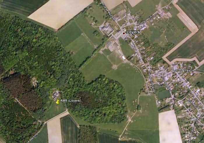 Belgische Befestigungen des Zweiten Weltkriegs, befestigte Stellung Namur, Intervall Andoy - Maizeret, zweite Widerstandslinie, Unterstand 9 von Loyers, 154 M/ü M. Gelegen am Ort Bossimé, rue de Bossimé, westlich der Gemeinde Loyers, Entität Namur, 80 m vom Unterstand AM10 (Loyers) entfernt. Es handelt sich sehr wahrscheinlich um einen flankierenden Intervallunterstand mit einer Schießscharte für Maschinengewehr und einer Eingangsschleuse, die durch ein leichtes Maschinengewehr verteidigt wird, alles geschützt hinter zwei Orillonen. Im November 2007 war er an eine kleine Scheune angebaut und mit Satellitenschüsseln gespickt, auf einem ordnungsgemäß eingezäunten Privatgrundstück und versteckt hinter einer hohen Hecke aus Dornengestrüpp.