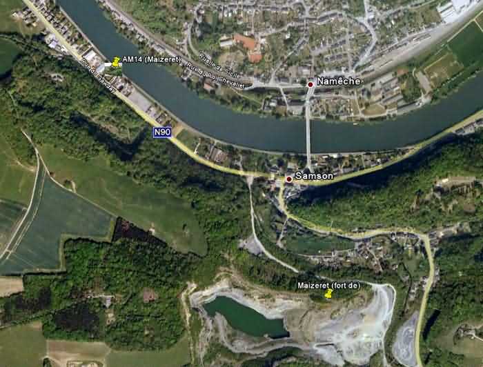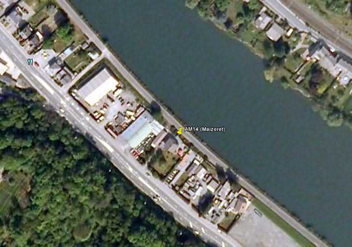 Belgické opevnění z druhé světové války, opevněné postavení Namur, interval Andoy - Maizeret, druhá linie odporu, bunkr 14 v Maizeret, 77 m/n. m. Nachází se na břehu, pravém břehu Meusy, mezi silnicí N90, ulicí 77 Rue de Gawday a stezkou pro vlečení lodí. Slouží jako základna a kůlna pro dům, ale je těžko rozeznatelný. Soukromý pozemek.