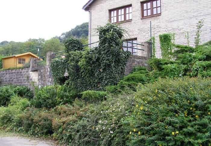Belgische Befestigungen des Zweiten Weltkriegs, befestigte Stellung Namur, Intervall Andoy - Maizeret, zweite Widerstandslinie, Unterstand 14 von Maizeret, 77 M/ü M. Gelegen am Ufer, rechtes Maasufer, zwischen der N90, 77 Rue de Gawday und dem Treidelpfad. Er dient als Fundament und Schuppen für ein Haus, ist aber schwer erkennbar. Privatgrundstück.