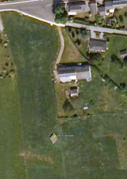 Position fortifiée de Namur, intervalle Dave - Andoy, première ligne de résistance, abri 25 d'Andoy, 195 m/alt. Situé dans un champ au sud de la Rue Grande, tout près de l’embranchement de la Rue du Maréchal, commune de Wierde, entité de Namur, il s’agit d’un abri d’intervalle à une embrasure pour une mitrailleuse et défense du sas d’entrée par fusil-mitrailleur. Sa structure semble encore être en bon état de conservation.