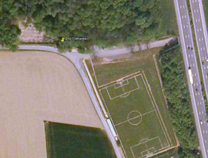 Belgische Befestigungen des Zweiten Weltkriegs, befestigte Stellung Namur, Intervall Dave - Andoy, erste Widerstandslinie, Unterstand 27 von Andoy, 171 M/ü M. Gelegen an der Rue des Platanes in Andoy, Entität Namur, einige Dutzend Meter von einem ungenutzten Fußballplatz entfernt und ganz in der Nähe der Autobahn A4/E411, es handelt sich um einen Intervallunterstand, der als Sperre gegen Durchbrüche dient, dank der Pfosten der Cointet-Sperre, die er verteidigt.