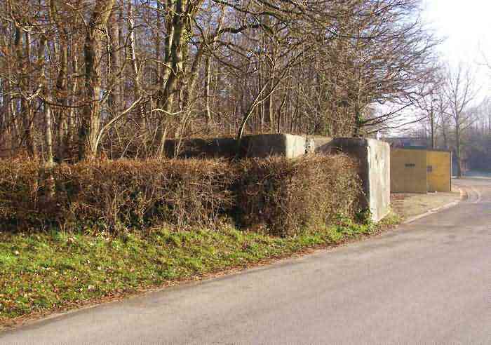 Belgian fortifications of the Second World War, fortified position of Namur, Dave - Andoy interval, first line of resistance, shelter 27 of Andoy, 171 m/asl. Located on Rue des Platanes in Andoy, entity of Namur, a few dozen meters from a disused football field, and very close to the A4/E411 motorway, it is an interval shelter serving as an anti-breakthrough post thanks to the posts of the Cointet barrier which it defends.