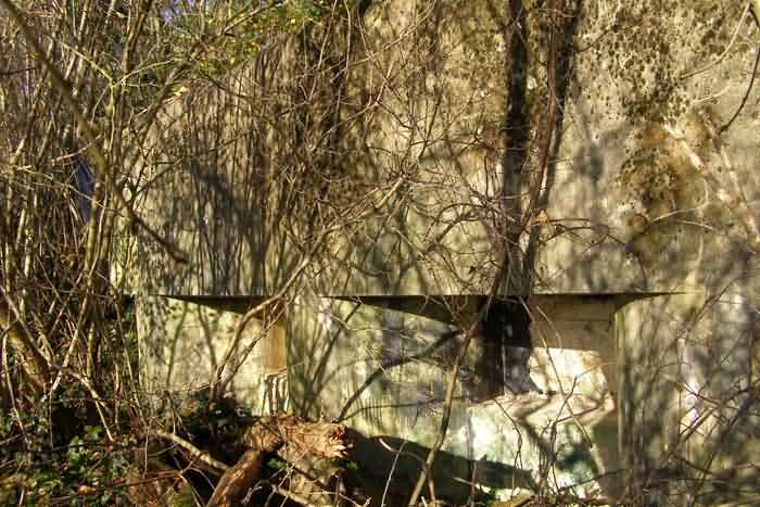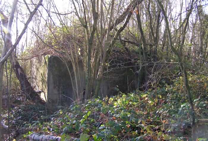 Belgian fortifications of the Second World War, fortified position of Namur, Andoy - Maizeret interval, first line of resistance, shelter 31 of Loyers, 206 m/asl. Located on the south edge of Rue du Grand Cortil, in a wooded area, in Loyers, entity of Namur, 100 m east-northeast of the double shelter AM 30 (Loyers) of which it is an exact copy with two embrasures for a machine gun on the side opposite the entrance which has an airlock defended by a firing loophole for a light machine gun. In the roof slab it probably carried a cupola for lookout and light machine gun, since torn off by scrap metal scavengers. Structurally it remains in an acceptable condition.