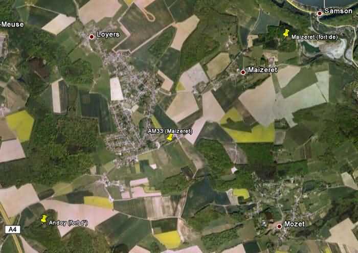 Belgické opevnění z druhé světové války, opevněné postavení Namur, interval Andoy - Maizeret, první linie odporu, bunkr 33 v Maizeret, 197 m/n. m. Nachází se na severním okraji ulice Rue Ferme Bialy, obec Maizeret, entita Namur, 100 m od dvojitého bunkru AM 32 (Loyers). Jedná se o jednoduchý intervalový bunkr s jednou střílnou pro kulomet na straně naproti vchodu, která má vzduchovou komoru bráněnou střílnou pro lehký kulomet. V roce 2023 byl zcela zarostlý vegetací a sotva rozeznatelný.