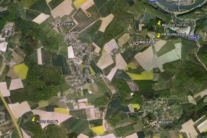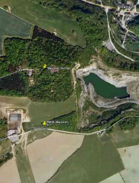 Belgické opevnění z druhé světové války, opevněné postavení Namur, interval Andoy - Maizeret, první linie odporu, mírně před linií pevností, bunkr 38 v Maizeret, 155 m/n. m. Nachází se na rohu lesa, pod stromy, rue du Samson, obec Maizeret, entita Namur, 50 m východně od bunkru AM 37 (Maizeret) a 240 m jižně od fronty 3-4 pevnosti Maizeret. Jedná se o dvojitý intervalový bunkr se dvěma sousedními střílnami pro kulomet v fasádě naproti vchodu, která má vzduchovou komoru bráněnou střílnou pro lehký kulomet bez lafety. V zásadě by měl sloužit jako pozorovatelna pro pevnost Maizeret a na stropní desce nést pancéřový zvonek pro pozorovatele a lehký kulomet, ale nebyli jsme schopni tuto skutečnost prokázat.