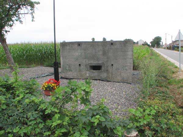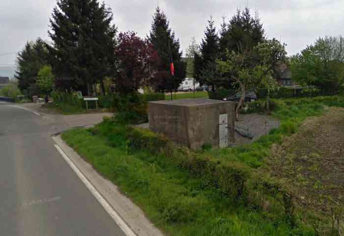 Belgische Festungen des Zweiten Weltkriegs, befestigte Stellung Lüttich, erste Widerstandslinie, vorgeschobene Stellung von Hombourg, G-Unterstand vom Typ PA Modell B, 220 M/ü. M., 3 Mann, 1 Maschinengewehr auf Chardôme-Lafette. An der Kreuzung der N608 rue du Cheval Blanc und des chemin de Hoppish gelegen, kurz vor der Brücke, die die Eisenbahn überspannt, wurde er als Denkmal mit Informationsschild, belgischer Flagge und Blumenkasten errichtet. Die Verschlussläden der Scharte fehlen, aber die Originaltür oder eine ähnliche Tür ist vorhanden und geschlossen, was eine Besichtigung des Inneren nicht ermöglicht hat. Die Umgebung ist perfekt gepflegt und der Unterstand ist strukturell in gutem Zustand. Der 2025 angelegte Radweg hat ihn nicht allzu sehr beeinträchtigt, obwohl er seinen Raum leicht beschnitten hat.