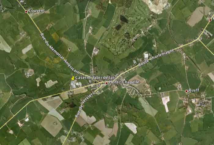 Weinig bekend omdat moeilijk toegankelijk, bevindt de schuilplaats van de kazerne van Henri-Chapelle zich helemaal achteraan. Het gaat om een niet-actieve persoonlijke schuilplaats met afmetingen van ongeveer 8 x 4 m, muren van ongeveer veertig centimeter dik en een dak van ongeveer zestig centimeter dik. De ingang is niet meer toegankelijk en het geheel dreigt te verdwijnen onder het puin, de vegetatie en het afval van het bedrijf dat de site bezet. De plaats is historisch zwaar beladen omdat hij diende voor de executie van verschillende personen onder omstandigheden die nog moeten worden opgehelderd, op het eerste gezicht maar zonder zekerheid, Duitse soldaten geëxecuteerd door de Amerikaanse militaire politie tijdens de bevrijding zoals de onderstaande archieffoto's lijken aan te geven. Privé-eigendom.