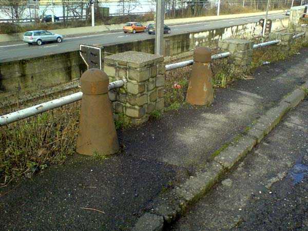Fortified Position of Liège, third line of resistance, counter-assault shelters. Shelter IR5, 62 m/asl, was located between the VW Paisse garage and the Q8 service station at the roundabout on Rue de Visé between Wandre and Jupille. It was destroyed during the development of the commercial zone and the construction of the A25 Liège-Maastricht motorway. Its embrasures fired towards the northeast where the cable and Cointet barrier obstacle was located, of which practically all the fixing posts remain at the foot of Rue de la Forêt, 80 m from the shelter's location, blocking Rue de Visé and Rue de la Forêt.