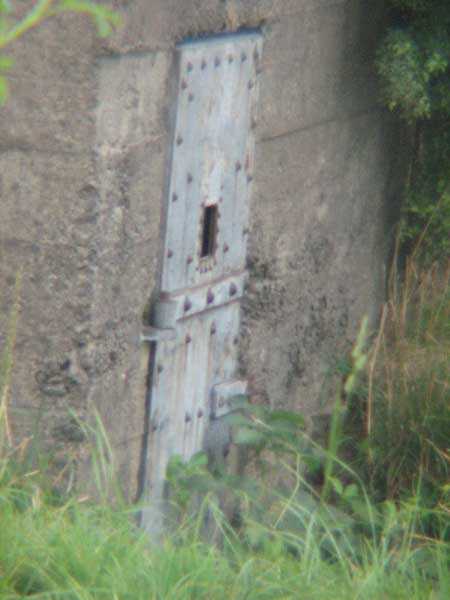 Belgian fortifications of the Second World War, fortified position of Liège, first line of resistance, advanced position of Jalhay, E shelter of type PA model A, 378 m/asl, 3 men, 1 machine gun on Chardôme mount. Covering the north-east, it is located in a pasture hedge at the end of a sunken lane. Difficult to access, we were able to determine that its original door is present and closed. We were unable to access either the embrasure or the interior.