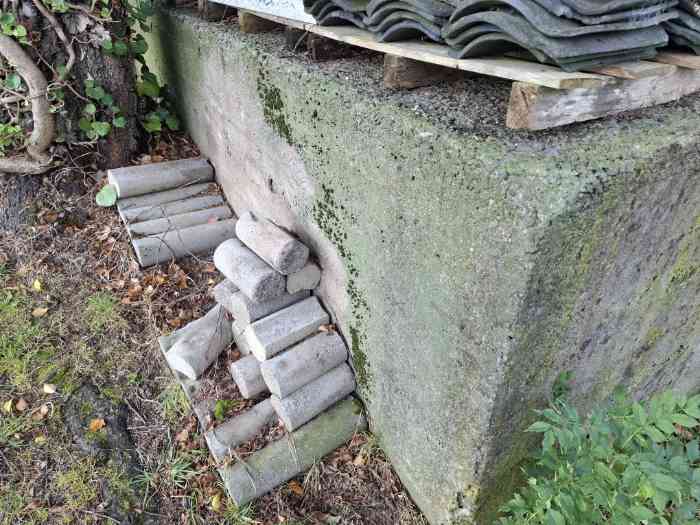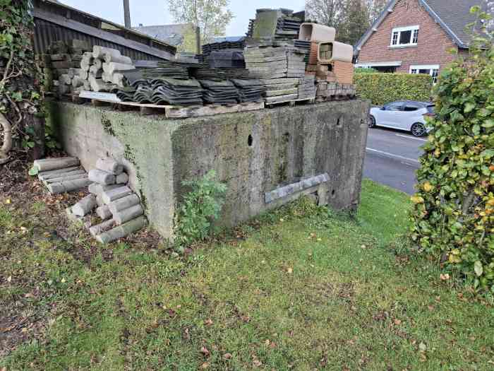 Belgische Festungen des Zweiten Weltkriegs, befestigte Stellung Lüttich, erste Widerstandslinie, vorgeschobene Stellung von Jalhay, F-Unterstand vom Typ PA wahrscheinlich Modell B, 376 M/ü. M., 3 Mann, 1 Maschinengewehr auf Chardôme-Lafette. Auf einem Privatgrundstück kontrollierte er die N629 in östlicher Richtung. Durch eine Thujahecke verborgen, wurde er erst 2020 freigelegt. Wir müssen einen erneuten Besuch machen, um seinen Zustand und sein Modell zu überprüfen.
