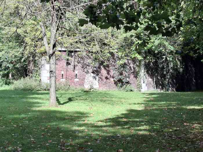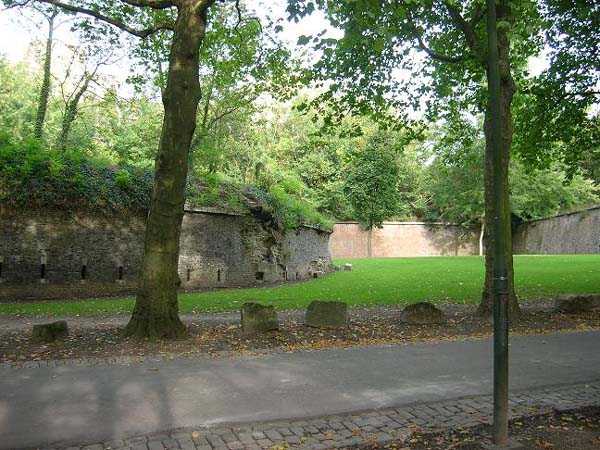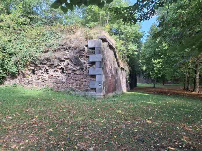 From the 11th century, under the leadership of Prince-Bishop Notger, Liège acquired the first walls of coal-bearing sandstone surrounding the urban core but leaving the hill of Sainte-Walburge outside the walls, despite an extension project outlined by Emperor Henry IV in the 12th century; from 1204, a new wall connected the Porte Sainte-Walburge to Païenporte and Hocheporte, but it remained unfinished when, in 1212, Duke Henry I of Brabant scaled the walls and pillaged the city, which led to the accelerated completion of the defenses in 1215; in 1255, Prince-Bishop Henry of Guelders had the Porte Sainte-Walburge built, equipped with towers, a drawbridge, a prison, a well and stairs to the valley, the first milestone of the citadel itself, which became a military but also a political tool of urban control; The following centuries saw destruction and reconstruction, including the terrible assault of 1468 by Charles the Bold, confirming the strategic importance of the site, further reinforced in the 16th century by bastions adapted to artillery; in the 17th century, Maximilian Henry of Bavaria ordered the construction (1650-1671) of a pentagonal bastioned citadel with five bastions — Saint-Lambert, Saint-François, Sainte-Marie, Saint-Maximilien and Saint-Henry — designed by engineers inspired by Vauban's methods, intended to lock down the city; it passed into the hands of the French several times, then to the Dutch after 1815, before being decommissioned at the end of the 19th century, replaced by the ring of Brialmont forts (1888-1891), then becoming a barracks, depot and command post; In the 20th century, it was occupied by the Germans during both wars, used as a military hospital, place of internment and execution (Enclos des Fusillés), before still housing some military services after 1945; the site, rich in underground infrastructure, notably preserves numerous ventilation and water supply wells, including the Païenporte well still visible behind curtain IV-V, while an enormous casemate occupies more than the length of curtain III-IV and communicates with the CPRA PFL command bunker, now inaccessible but potentially reopenable; The construction of the Regional Hospital Centre (1974-1978) led to the destruction of a large part of the works, but several curtain walls, bastions and ravelins are classified as monuments and integrated into the Citadel Park, which now offers a trail of memory and landscapes, bearing witness to the evolution of a major site in the military and urban history of Liège, from the Middle Ages to the present day.