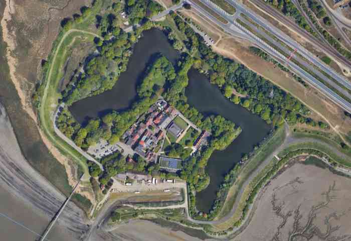 FPA (Fortified Position of Antwerp). Fort dating from Napoleon Bonaparte, built in 1810 to monitor the Scheldt downstream of the city of Antwerp. Its bastions are made of raised earth. A charming small town named Lillo was built intramuros. One can still see there, besides two small posterns, a barracks and a powder magazine which is undergoing restoration. On the glacis, on the access path, a small, square blockhouse with 16 embrasures (4 per side) also dating from 1810 has similarly been recently restored.