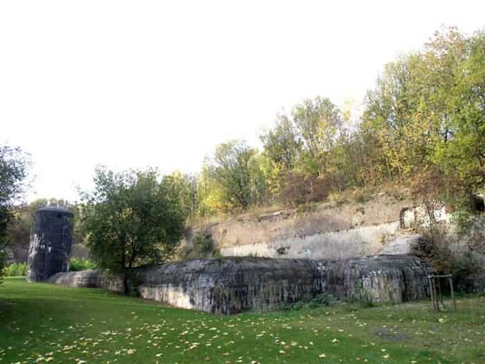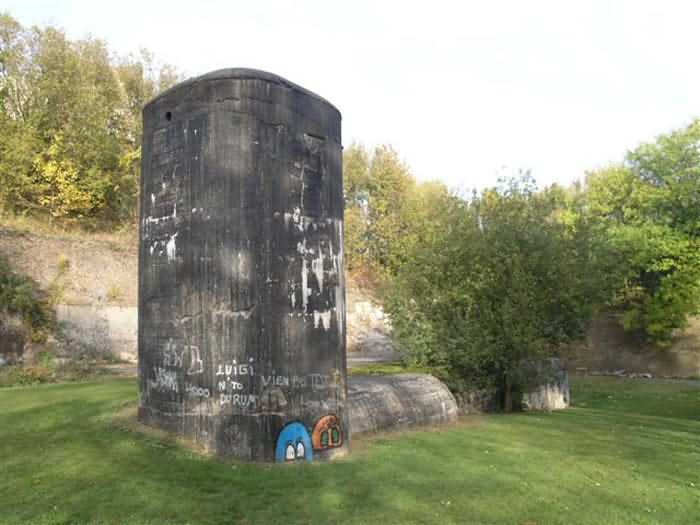 The so-called CPRA bunker (Provincial Information and Alert Center) located at the curtain wall 4-5 of the citadel of Liège constitutes, according to documentary sources and the survey of local fortifications, one of the nodal points of the command and transmission system built for provincial defense in the interwar period and then fitted out during and after the Second World War; intended to centralize links between the Front Tactical Centers (CTF) and provincial services, this underground/semi-underground post presents itself in the form of concrete works with rounded shapes clearly visible today in the Citadel park, organized around bays of technical premises and radio and telephone watch rooms, connected by ducts and passages to the upper circulation routes and, according to testimonies and cartographic surveys, to the military road planned for material handling and the routing of light vehicles; the commonly accepted chronology — program decision from 1937 for all provincial CPRAs — places the realization of these posts in the last phase of Belgian fortification effort before the campaign of May 1940, even though the exact schedule of work on curtain wall 4-5 varies from document to document and completion was sometimes slowed by the international situation; functionally, the CPRA served both as an intelligence post, telephone alert center and logistical relay for the coordination of fire and transmissions between advanced works and provincial authorities, hence the importance of an internal architecture favoring energy redundancy, protected ventilation and the dissemination of radio beams; the present state of the work — visually accessible in the park but closed to the public except for exceptional visits — shows later modifications: renovation of access heads, post-war modification of the air intake tower equipped with NBCR (decontamination) filters and concrete reinforcements that underline the continuous adaptation of the site to the modern threat; finally, if the CPRA of Liège is the most reported in recent surveys, analogous CPRAs were planned for other provinces and some observers draw up the partial list (provincial CPRAs connected to local CTFs (telephone exchanges)), but many of these bunkers remain partially documented and unfinished — the online bibliography and local heritage cartography provide entry points to deepen each case.
