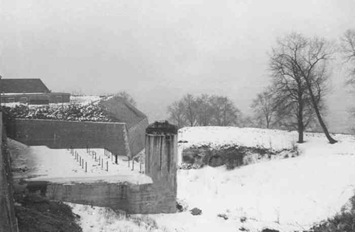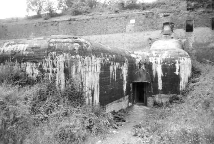 The bunker identified locally as the CPRA (Centre Provincial de Renseignement et d’Alerte) at curtain 4-5 of the Citadel of Liège appears in fortification surveys and local field reports as a provincial intelligence and alert centre type of installation, combining concrete rounded headworks and semi-subterranean technical chambers organised around radio, telephone and power equipment and linked by internal passages and surface service accesses to allow rapid resupply and redundant communications; the CPRA concept — decisioned in the late 1930s as part of a broader program of provincial centres tied to the CTF (Centre Tactique de Front) network — was intended to gather battlefield information, centralise alarming and coordinate communications between forward works and provincial authorities, and the Liège CPRA’s later history shows post-war adaptations such as the addition of an air-intake/decontamination tower and reinforced concrete works to meet changing NBC and civil-defence requirements; comparable CPRA facilities were planned for other provinces, but these vary greatly in implementation and survival today and remain a fragmentary field in Belgian fortification studies, further research in local archives being necessary to detail construction dates, contractors and precise internal layouts.