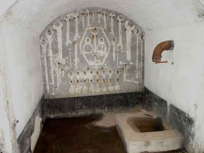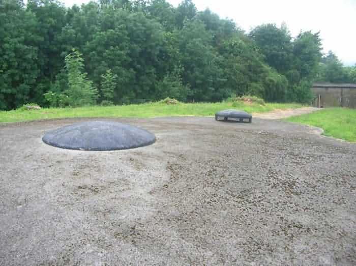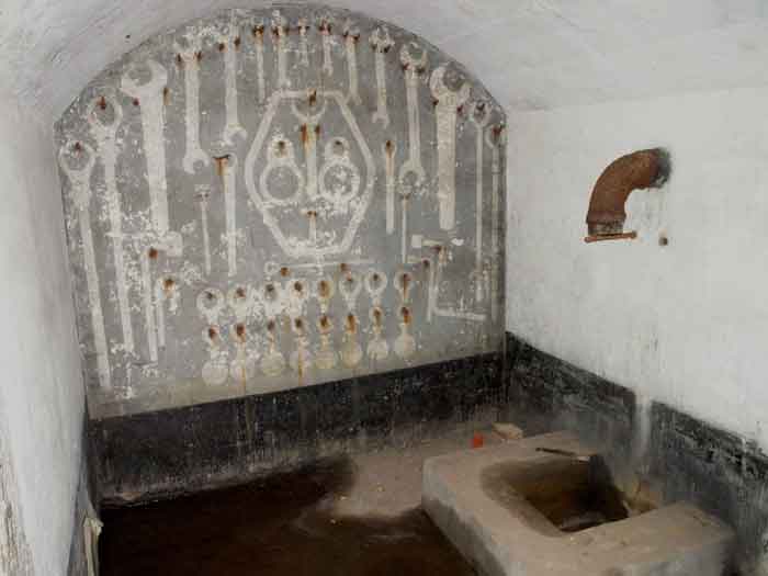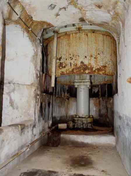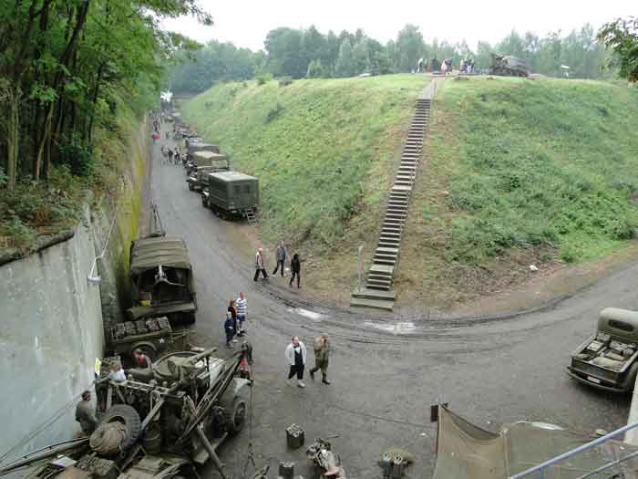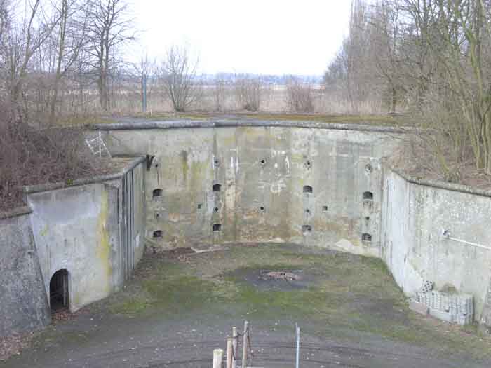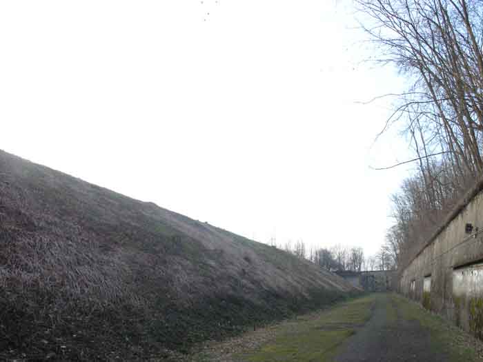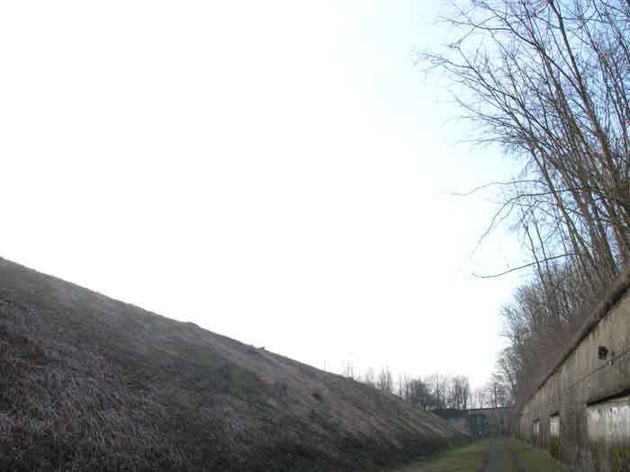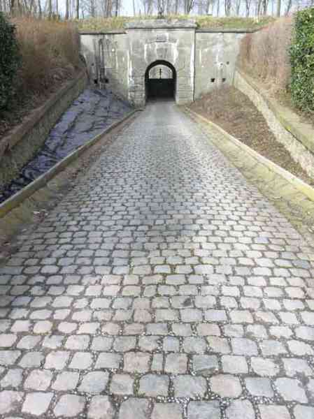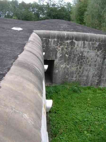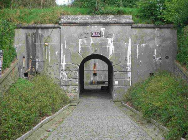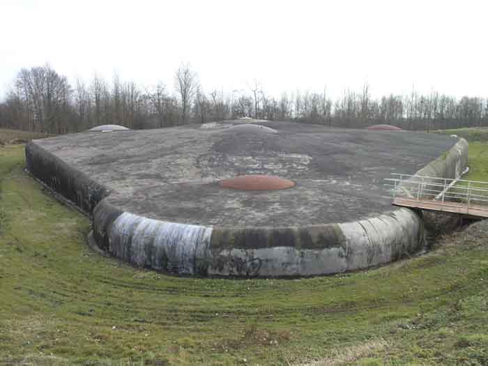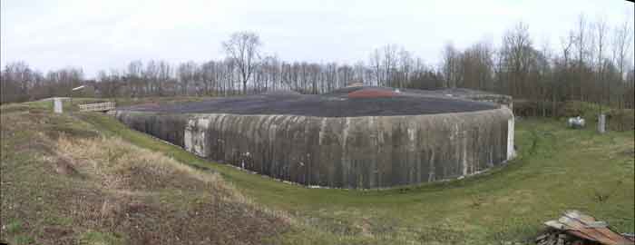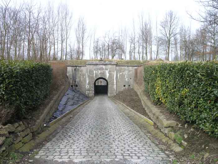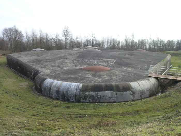 Fortified Position of Liège, northwest of the city, 1888-1892. +/- 165 m/asl. 1 cupola 2 x 15 cm, 1 cupola 1 x 21 cm, 2 cupolas 1 x 12 cm, 3 turrets 1 x 5.7 cm, 1 armored searchlight, 6 cannons 5.7 cm for flanking. Small triangular fort lacking a curtain wall at the gorge. Its strongly vaulted infantry exit has a reinforced concrete roof. During the recent renovation work on the central massif, one had the opportunity to see how much the massif had been "nibbled away" by German artillery in August 1914, it was quite impressive. Although not rearmed during the interwar period, it received some modifications to fulfill its role as a command post for field units (armored doors, bolted doors, antenna in the counterscarp gallery, etc.). It is today owned by the association "Les amis du fort de Lantin" which has laid out a decidedly modern tour circuit there and worked for many years. The central massif has been completely renovated and provided with entirely or partially fictitious armor plating. This nonetheless provides a unique spectacle that must be contemplated. The association has, moreover, carried out reconstructions in the engine room, the fire control room, and recently (June 2003) reconstructed the rotation system of the right 12 cm cupola. Its water system has been made 100% operational and it is the only fort where it can be studied at leisure from the well to the cesspit included. Open to the public.
