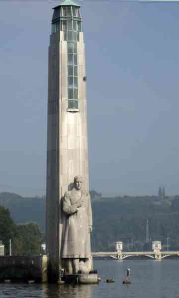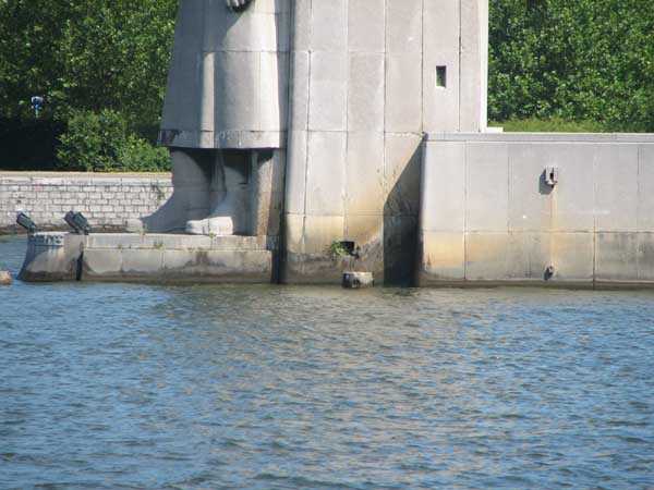 Fortified Position of Liège, fourth line of resistance, shelters of Île Monsin and the Meuse bridges, shelter MeMo1, 59 m/asl. Located at the western tip of Île Monsin beneath the feet of the statue of King Albert I, hero of the Great War and initiator of the canal which bears his name and begins at this point, and the lighthouse against which it leans, MeMo1 is at the mercy of the slightest flood as its embrasure is almost at water level and its base slab below water level. We have not yet been able to visit it.