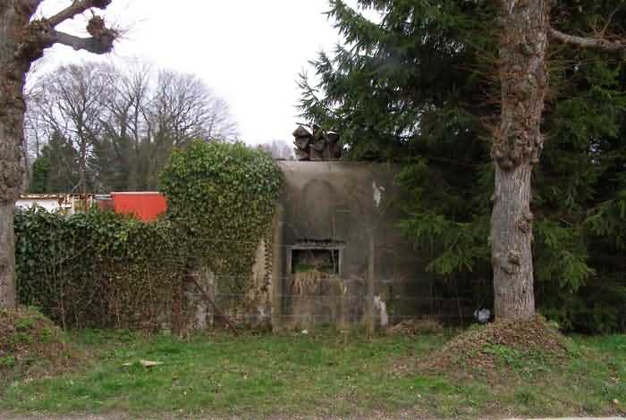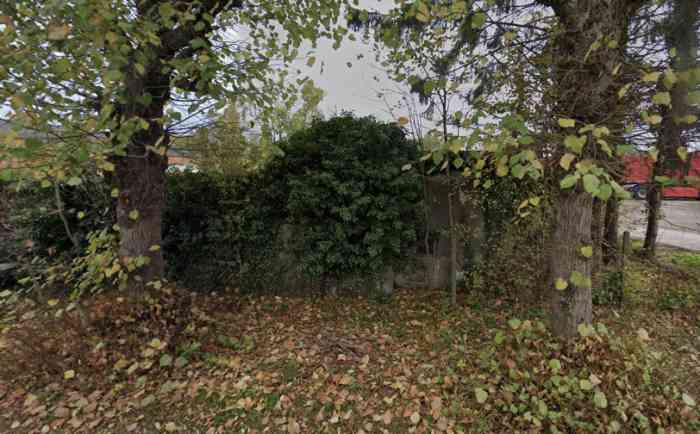Belgian fortifications of the Second World War, fortified position of Namur, Suarlée - Malonne interval, single line of resistance, shelter SM 7/SS 11 (Suarlée), 171 m/asl. Located under a clump of trees, at the north corner of Rue du Château de Suarlée and Rue de Zualart, municipality of Suarlée, entity of Namur, it is a simple flanking interval shelter with an embrasure for a machine gun. In the facade opposite the shield is the entrance with an airlock defended by a firing loophole for a light machine gun without mount and a grenade chute, as well as the emergency exit communicating directly with the firing room. Use and state of preservation unknown.