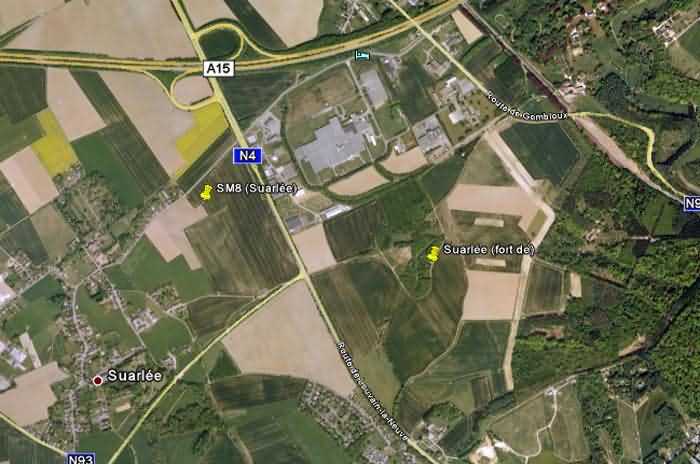 Belgické opevnění z druhé světové války, opevněné postavení Namur, interval Suarlée - Malonne, jediná linie odporu, bunkr SM 8/SS 12 (Suarlée), 168 m/n. m. Nachází se pod skupinou stromů, 900 m od místa, kde se nacházel výběžek 1 pevnosti Suarlée, 80 m jihovýchodně od ulice Rue Zualart, obec Suarlée, entita Namur, jedná se o jednoduchý boční intervalový bunkr se střílnou pro kulomet. Ve fasádě proti štítu se nachází vchod se vzduchovou komorou bráněnou střílnou pro lehký kulomet bez lafety a granátovým skluzem, a také nouzový východ přímo spojený se střeleckou místností. Byl maskován jako přístavba pro zemědělský podnik s čtvercovým půdorysem, cihlovým zdivem a sedlovou střechou, z níž zbývá jen polovina jedné zdi jediné fasády, zbytek pravděpodobně odstranili místní obyvatelé pro svou vlastní potřebu.