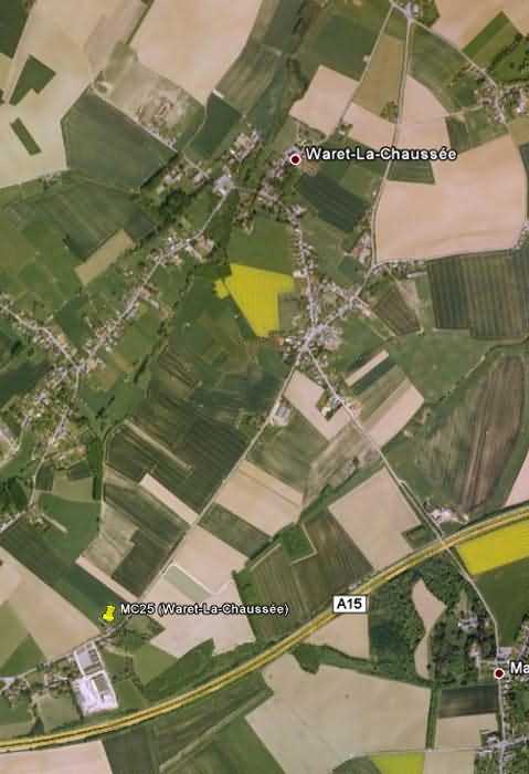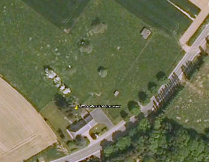Fortifications belges de la deuxième guerre mondiale, position fortifiée de Namur, intervalle Marchovelette - Cognelée, première ligne de résistance, abri MC 25 de Waret-La-Chaussée, 204 m/alt. Situé route de Champlon dans les dépendances à l’arrière de l’habitation au numéro 274, à 80 m au sud-ouest de l’abri MC 25d/CM 4bis, il s’agit d’un abri d’intervalle simple flanquant avec une embrasure pour une mitrailleuse. Dans la façade opposée au bouclier se trouve l’entrée munie d’un sas défendu par un créneau pour un fusil-mitrailleur sans affût et une goulotte lance-grenades ainsi que l’issue de secours communiquant directement avec la chambre de tir. Il est en bon état de conservation.