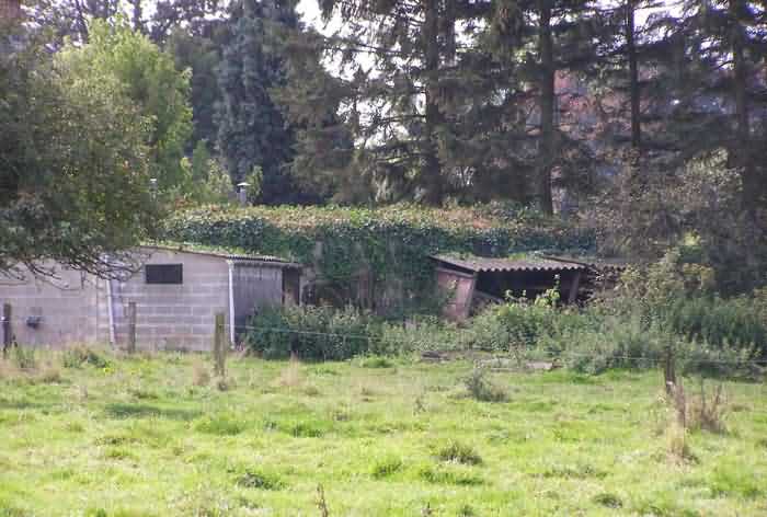 Belgian fortifications of the Second World War, fortified position of Namur, Marchovelette - Cognelée interval, first line of resistance, shelter MC 25 of Waret-La-Chaussée, 204 m/asl. Located on Route de Champlon in the outbuildings behind the dwelling at number 274, 80 m southwest of shelter MC 25d/CM 4bis, it is a simple flanking interval shelter with an embrasure for a machine gun. In the facade opposite the shield is the entrance with an airlock defended by a firing loophole for a light machine gun without mount and a grenade chute, as well as the emergency exit communicating directly with the firing room. It is in good state of preservation.