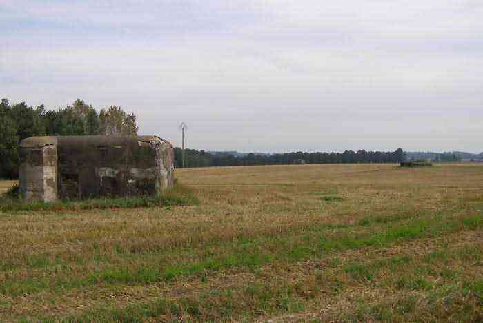 Belgian fortifications of the Second World War, fortified position of Namur, Marchovelette - Cognelée interval, first line of resistance, shelter MC 26/CM 5 (Marchovelette), 195 m/asl. Located in a field on the edge of the A15/E42 motorway in Wallonia, visible at kilometer 45.1 when leaving the Daussoulx interchange towards Liège, 320 m west-northwest of shelter MC 11/CM 5bis (Marchovelette), it is a simple flanking interval shelter with an embrasure for a machine gun. In the facade opposite the shield is the entrance with an airlock defended by a firing loophole for a light machine gun without mount and a grenade chute, as well as the emergency exit communicating directly with the firing room. It is in good state of preservation.