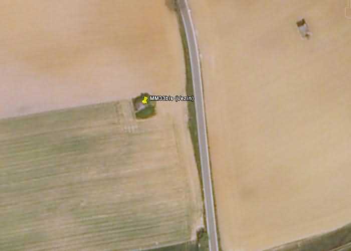 Belgische versterkingen uit de Tweede Wereldoorlog, versterkte stelling Namen, interval Maizeret - Marchovelette, eerste vooruitgeschoven weerstandslijn, schuilkelder MM 33bis (Gelbressée), 187 m/TAW. Gelegen in een veld onder een bosje bomen en een dichte, groenblijvende vegetatie, vlakbij de westelijke rand van de Rue de Warlet, waar men die Rue des Bigarreaux begint te noemen, gemeente Gelbressée, entiteit Namen, 120 m oostzuidoosten van de schuilkelder MM 33 (Ville en Waret), het gaat om een dubbele flankerende intervalschuilkelder met twee schietgaten voor een mitrailleur op de tegenover de ingang gelegen zijde, voorzien van een sluis verdedigd door een schietgat voor een licht machinegeweer zonder affuit. De van het schild verst verwijderde schietkamer heeft een nooduitgang. Op de dakplaat droeg zij een pantserkoepel voor wachter en licht machinegeweer, losgerukt door schroothandelaren.