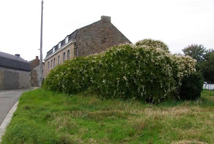 Belgische Befestigungen des Zweiten Weltkriegs, befestigte Stellung Namur, Intervall Maizeret - Marchovelette, erste vorgeschobene Widerstandslinie, Unterstand MM 35a (Marche-les-Dames), 193 M/ü M. Gelegen an der 9 Rue Haie-du-Loup, Dorf Wartet, Gemeinde Marche-les-Dames, Entität Namur, 250 m westsüdwestlich des Unterstandes MM 35 (Marche-les-Dames) und 240 m nordwestlich des Unterstandes MM 36 (Marche-les-Dames), es handelt sich um einen Intervallunterstand, der scheinbar noch vorhanden ist, aber völlig von immergrüner Vegetation bedeckt und unmöglich zu beschreiben oder auch nur zu erkennen ist. Seine Existenz ist jedoch durch einen Neubau bedroht.