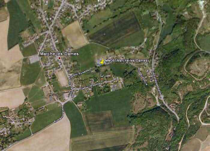Belgické opevnění z druhé světové války, opevněné postavení Namur, interval Maizeret - Marchovelette, první předsunutá linie odporu, bunkr MM 36 (Marche-les-Dames), 164 m/n. m. Nachází se na adrese Rue aux Ruwales 9, vesnice Wartet, obec Marche-les-Dames, entita Namur, 240 m jihovýchodně od bunkru MM 35a (Marche-les-Dames), v předdvoří farmy, tak těsně u silnice, že roh musel být uříznut při úpravě cesty. Jedná se o jednoduchý boční intervalový bunkr se střílnou pro kulomet, zmizelou, v rovněž zmizelé fasádě naproti vchodu do sklepa, opatřenou vzduchovou komorou bráněnou střílnou pro lehký kulomet bez lafety. Zbytky bunkru jsou pěkně obloženy cihlami a lomovým kamenem a také mírně převislou střešní plošinou, aby napodobily civilní přístavbu, vše kromě vchodu částečně skryto popínavým břečťanem. Zjevně slouží jako kůlna pro jeho majitele.