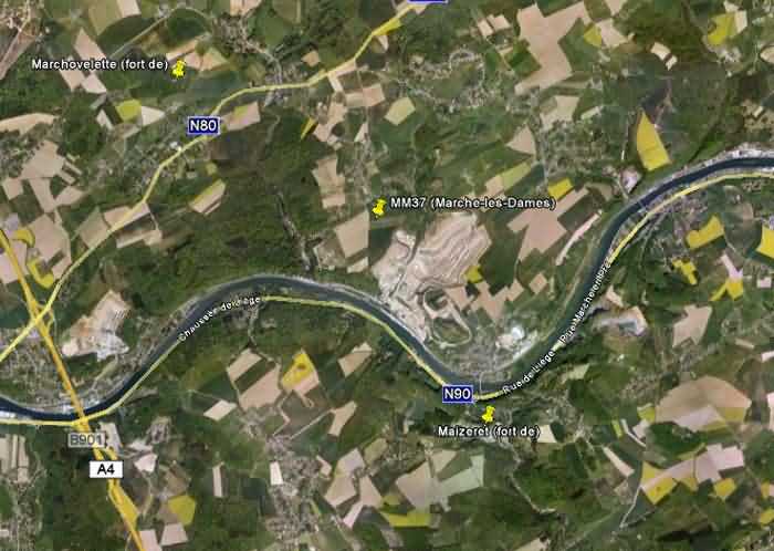 Belgické opevnění z druhé světové války, opevněné postavení Namur, interval Maizeret - Marchovelette, první předsunutá linie odporu, bunkr MM 37 (Marche-les-Dames), 176 m/n. m. Nachází se v polích, na polní cestě ústící do Rue aux Vallées, jedná se o jednoduchý boční intervalový bunkr se střílnou pro kulomet, vchodem vybaveným vzduchovou komorou bráněnou střílnou pro lehký kulomet bez lafety a granátovým skluzem v fasádě proti štítu. Přestože je nejbližší, je stále vzdálen 3 600 m od pevnosti Maizeret, s mezi nimi ležícím dolomitovým lomem Naméche, známým jako „Dolomies de Marche-les-Dames“, a také hluboko zaříznutým údolím Meusy. Je v dobrém stavu zachování.
