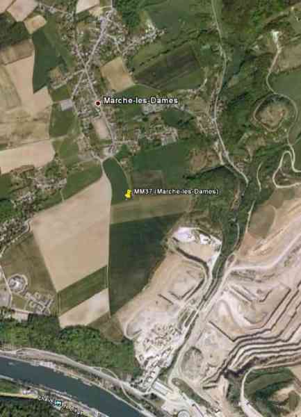 Belgische Befestigungen des Zweiten Weltkriegs, befestigte Stellung Namur, Intervall Maizeret - Marchovelette, erste vorgeschobene Widerstandslinie, Unterstand MM 37 (Marche-les-Dames), 176 M/ü M. Gelegen in den Feldern, in einem Wirtschaftsweg, der in die Rue aux Vallées mündet, es handelt sich um einen einfachen flankierenden Intervallunterstand mit einer Schießscharte für ein Maschinengewehr, einem Eingang, der mit einer Schleuse ausgestattet ist, die durch eine Schießscharte für ein leichtes Maschinengewehr ohne Lafette verteidigt wird, und einer Granatwurfschleuse in der dem Schild gegenüberliegenden Fassade. Obwohl er der nächste ist, ist er dennoch 3 600 m vom Fort Maizeret entfernt, mit dazwischen dem Dolomitsteinbruch von Naméche, bekannt unter dem Namen „Dolomies de Marche-les-Dames“, sowie dem tief eingeschnittenen Maastal. Er befindet sich in einem ordentlichen Erhaltungszustand.