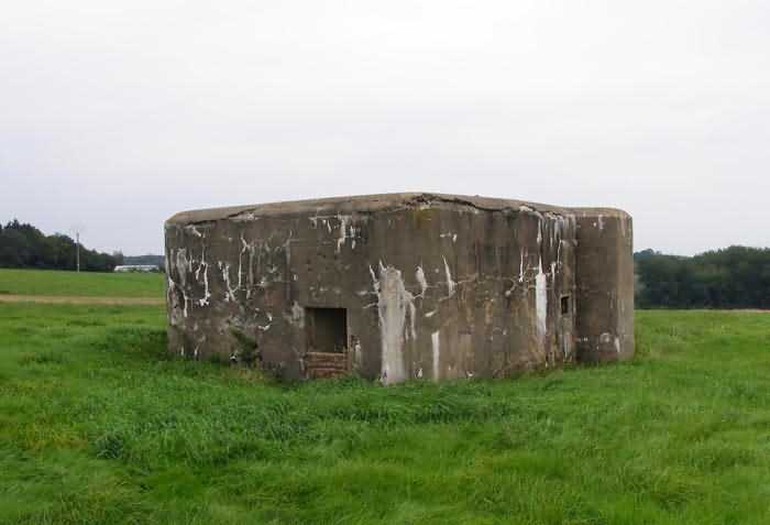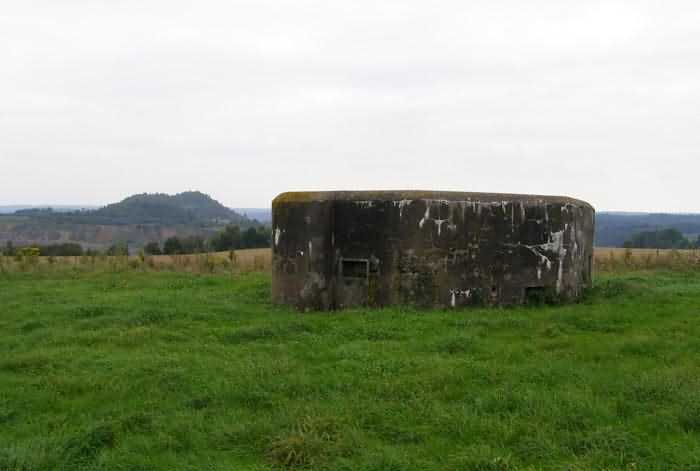 Belgian fortifications of the Second World War, fortified position of Namur, Maizeret - Marchovelette interval, first advanced line of resistance, shelter MM 37 (Marche-les-Dames), 176 m/asl. Located in the fields, on an agricultural road leading to Rue aux Vallées, it is a simple flanking interval shelter with an embrasure for a machine gun, an entrance equipped with an airlock defended by a firing loophole for a light machine gun without mount, and a grenade chute in the facade opposite the shield. Although the closest, it is still 3,600 m away from Fort Maizeret, with between them the Naméche dolomite quarry, known as “Dolomies de Marche-les-Dames”, as well as the deeply incised Meuse valley. It is in a correct state of preservation.