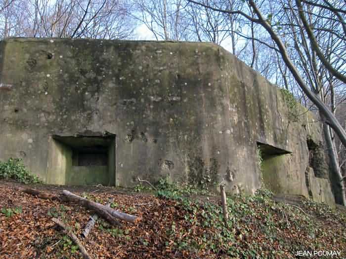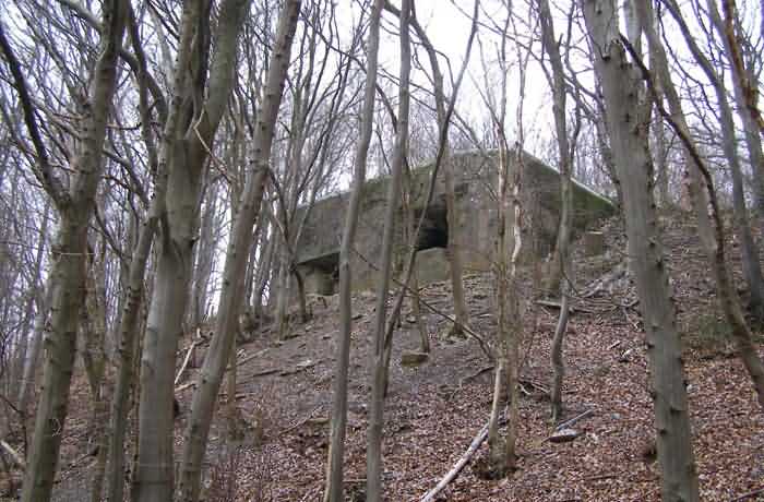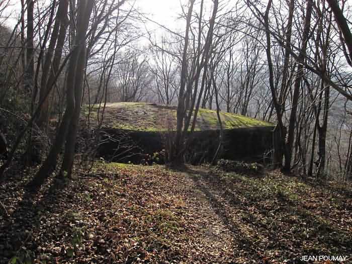 Fortified Position of Namur, Saint-Héribert - Dave interval, Troonois shelter, 172 m/asl. The Troonois shelter is located on the air duct prepared for the Second World War at the fort of Dave. It is armed with an embrasure for a 47 mm anti-tank gun, an embrasure for a machine gun and an embrasure for a light machine gun. On the roof it carried a large model armored cupola for lookout and light machine gun, since scrapped.