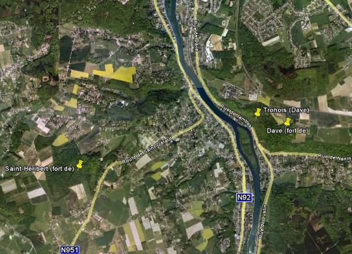 Befestigte Stellung Namur, Intervall Saint-Héribert - Dave, Unterstand Troonois, 172 M/ü. M. Der Unterstand Troonois befindet sich auf dem für den Zweiten Weltkrieg eingerichteten Luftschacht des Forts Dave. Er ist mit einer Schießscharte für eine 47-mm-Panzerabwehrkanone, einer Schießscharte für ein Maschinengewehr und einer Schießscharte für ein leichtes Maschinengewehr ausgestattet. Auf dem Dach trug er eine gepanzerte Kuppel für Beobachter und leichtes Maschinengewehr großen Modells, die inzwischen verschrottet wurde.