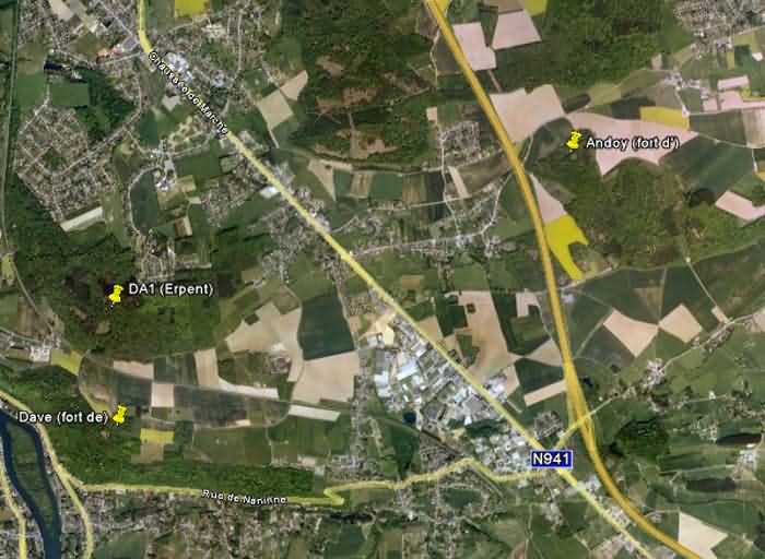 Opevněné postavení Namur, interval Dave - Andoy, druhá linie odporu, bunkr 1 v Erpentu, 204 m/n. m. Nachází se na severozápadním konci druhé linie odporu, v lese s výhledem na železniční trať Jambes-Nanines z výšky 50 m, v Erpentu, jedná se o intervalový bunkr s jednou střílnou pro kulomet nebo protitankový kanón, jehož vnější stěny jsou maskovány jako lžící a jehož všechny otvory jsou zazděné. Je snazší ho najít v zimě, i když není nijak zvlášť zarostlý vegetací.