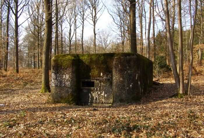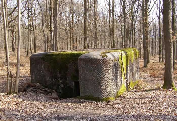 Fortified Position of Namur, Dave - Andoy interval, second line of resistance, shelter 1 of Erpent, 204 m/asl. Located at the north-western end of the second line of resistance, in the forest overlooking the Jambes-Nanines railway line by 50 m, at Erpent, it is an interval shelter with one embrasure for a machine gun or an anti-tank gun, whose exterior walls are camouflaged like a spoon and whose all openings are walled up. It is easier to find in winter, although it is not particularly overgrown with vegetation.