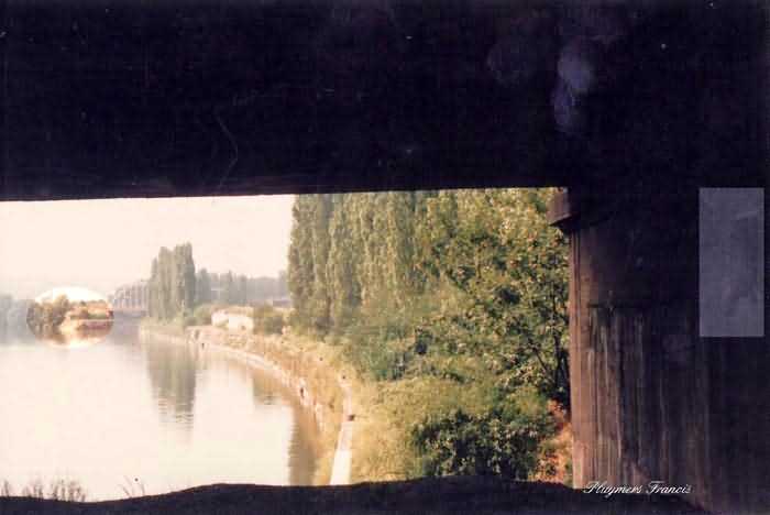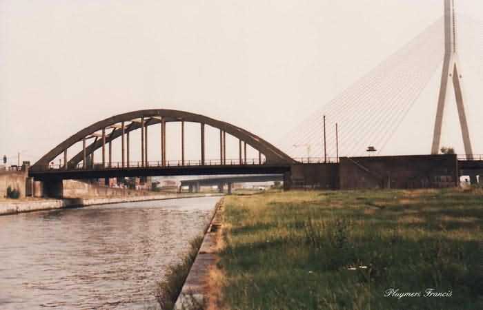 Fortified Position of Liège, fourth line of resistance, shelters of Île Monsin and the Meuse bridges, shelter MeMo6, 57 m/asl. Located on the mole separating the Meuse from the Albert Canal, 95 m east of shelter MeA3, in one of the central piers of the old Wandre bridge. Destroyed.