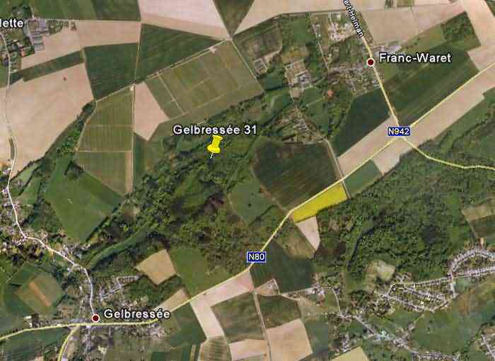 Fortifications belges de la deuxième guerre mondiale, position fortifiée de Namur, intervalle Maizeret - Marchovelette, première ligne de résistance avancée, abri MM 31 (Franc-Waret), 186 m/alt. Situé dans le bois au sud-ouest de Franc-Waret, dans un chemin forestier, il s’agit d’un abri d’intervalle flanquant simple avec une embrasure pour une mitrailleuse, une entrée dans la face opposée au bouclier pourvue d’un sas défendu par un créneau pour un fusil-mitrailleur sans affût et une issue de secours dans la chambre de tir.