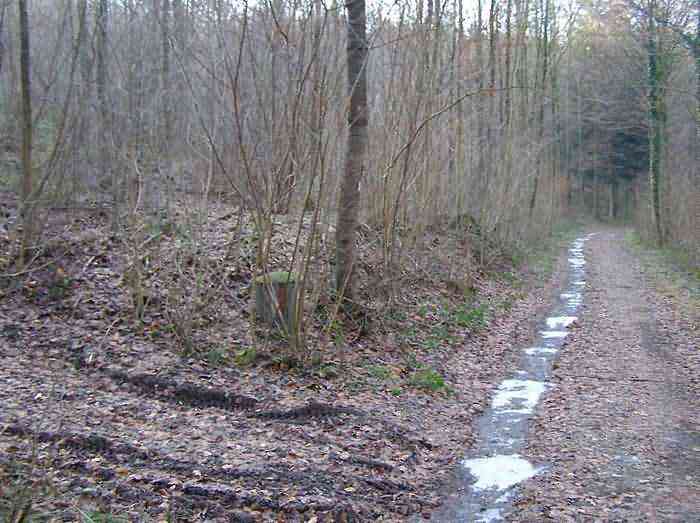 Belgische Befestigungen des Zweiten Weltkriegs, befestigte Stellung Namur, Intervall Maizeret - Marchovelette, erste vorgeschobene Widerstandslinie, Unterstand MM 31 (Franc-Waret), 186 M/ü M. Gelegen im Wald südwestlich von Franc-Waret, in einem Waldweg, es handelt sich um einen einfachen flankierenden Intervallunterstand mit einer Schießscharte für ein Maschinengewehr, einem Eingang auf der dem Schild gegenüberliegenden Seite, der mit einer Schleuse ausgestattet ist, die durch eine Schießscharte für ein leichtes Maschinengewehr ohne Lafette verteidigt wird, und einem Notausgang im Schießraum.