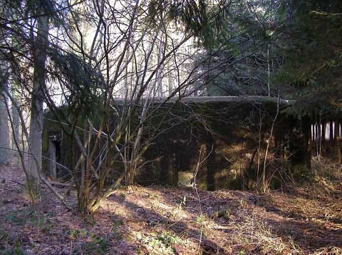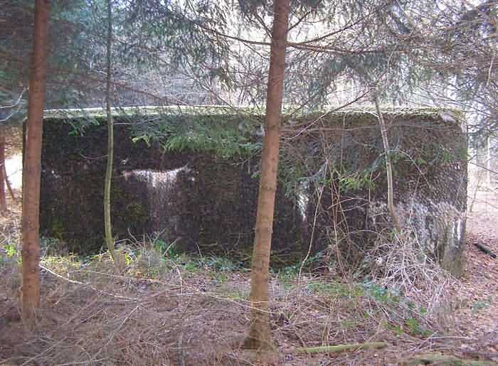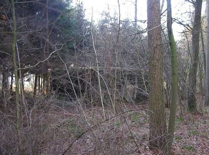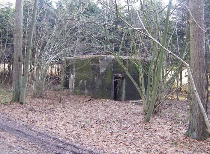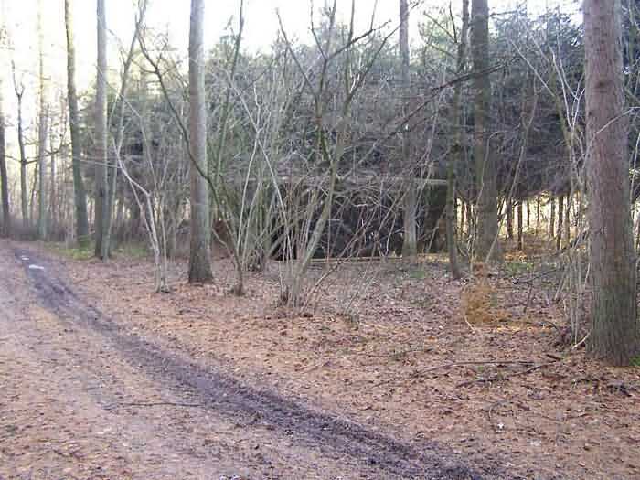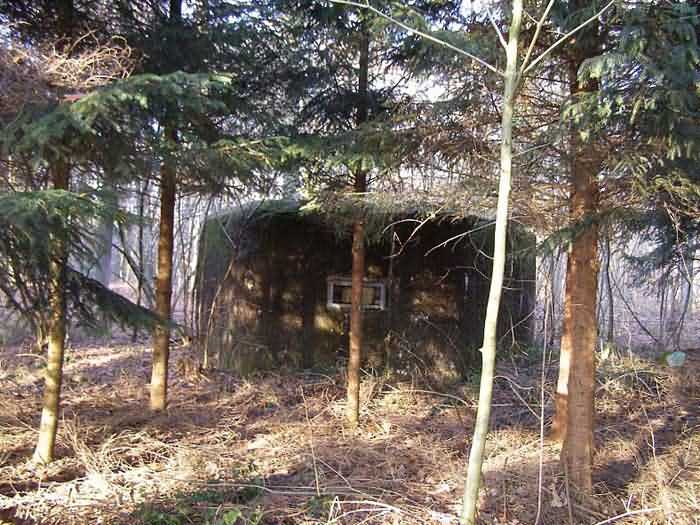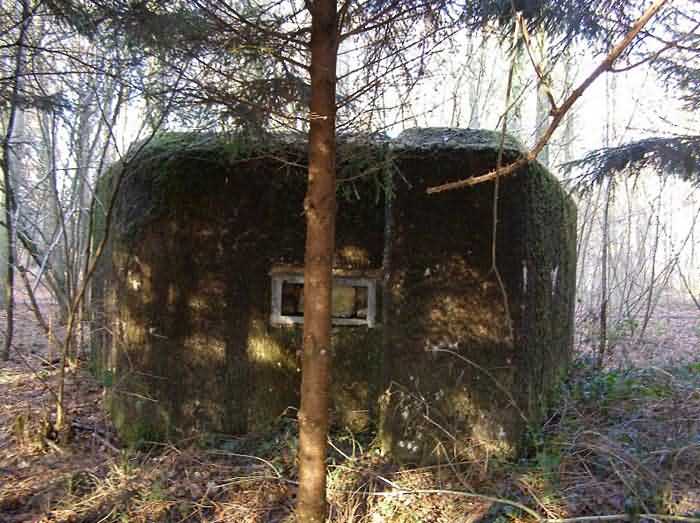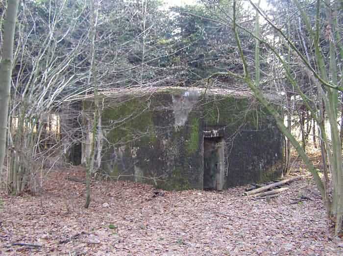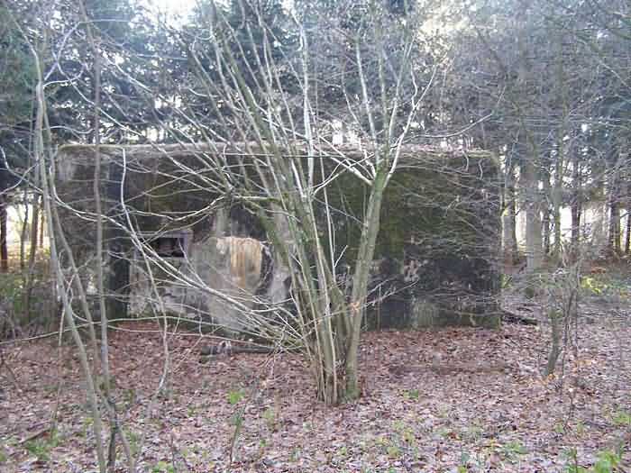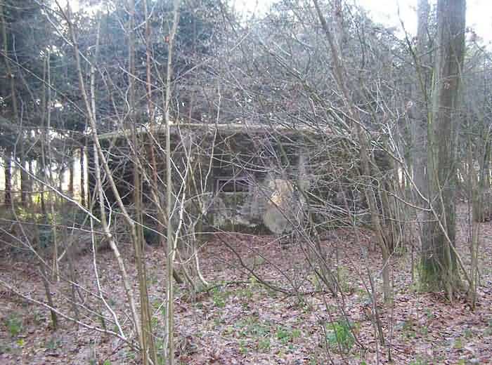 Belgian fortifications of the Second World War, fortified position of Namur, Maizeret - Marchovelette interval, first advanced line of resistance, shelter MM 31bis (Franc-Waret), 210 m/asl. Located in the woods southwest of Franc-Waret, on a forest path, 220 m south-southeast of shelter MM 31 (Franc-Waret), it is a simple flanking interval shelter with an embrasure for a machine gun, an entrance on the side opposite the shield provided with an airlock defended by a firing loophole for a light machine gun without mount, and an emergency exit in the firing room.