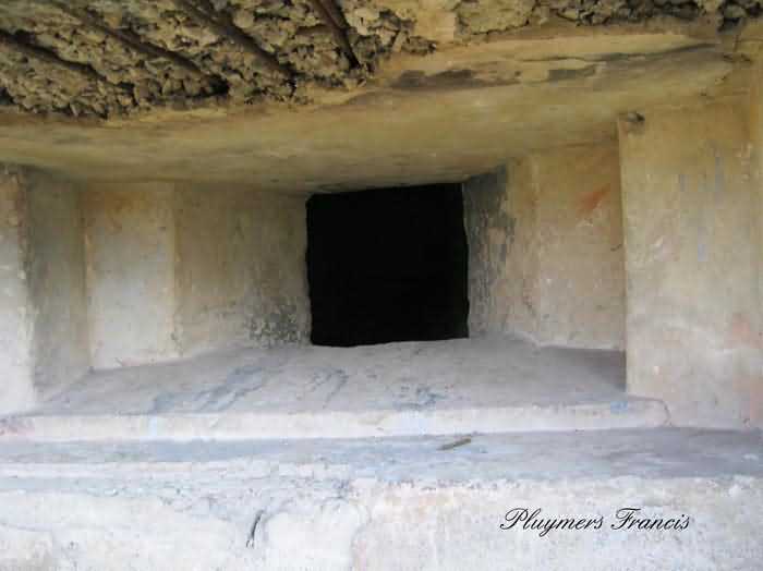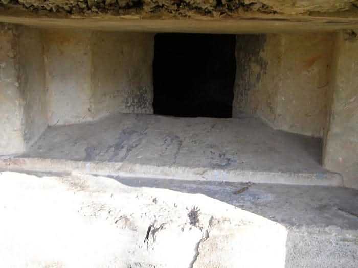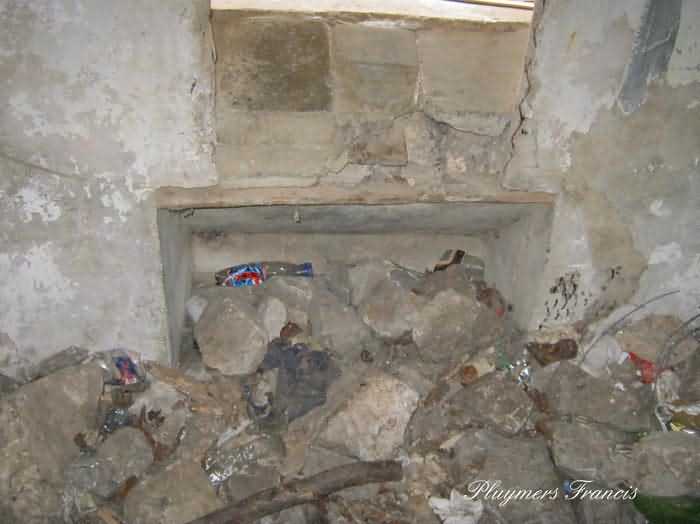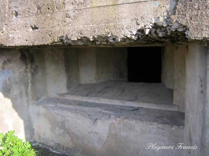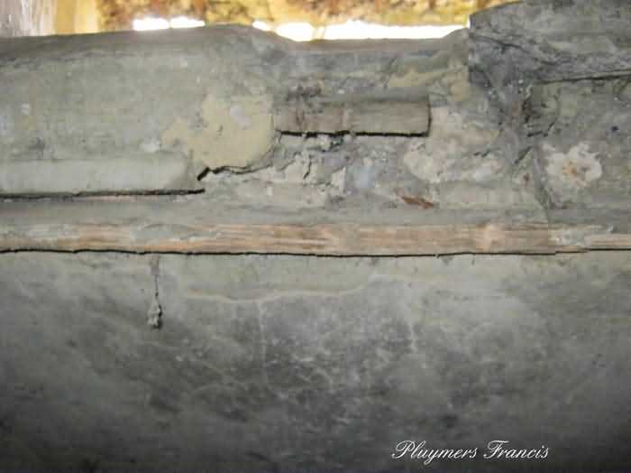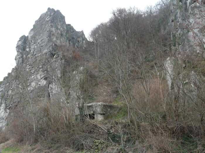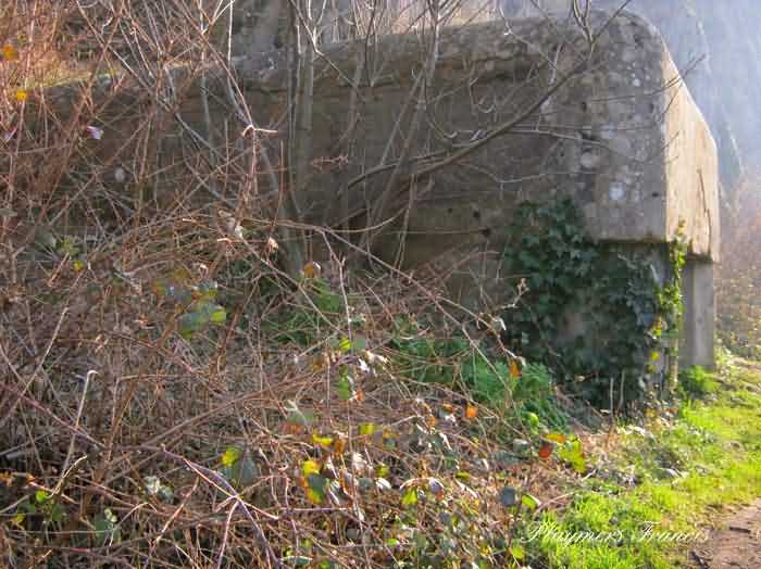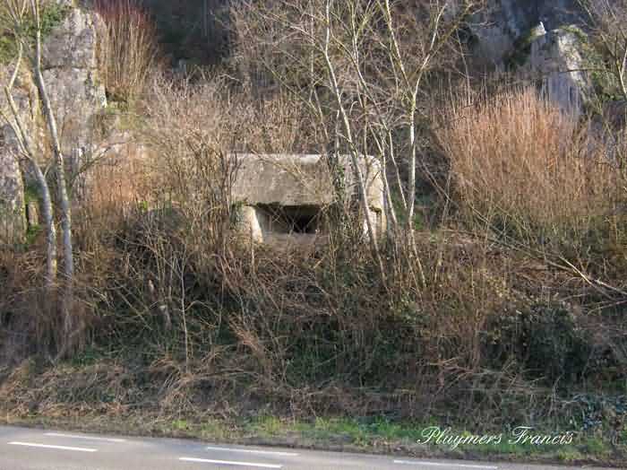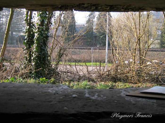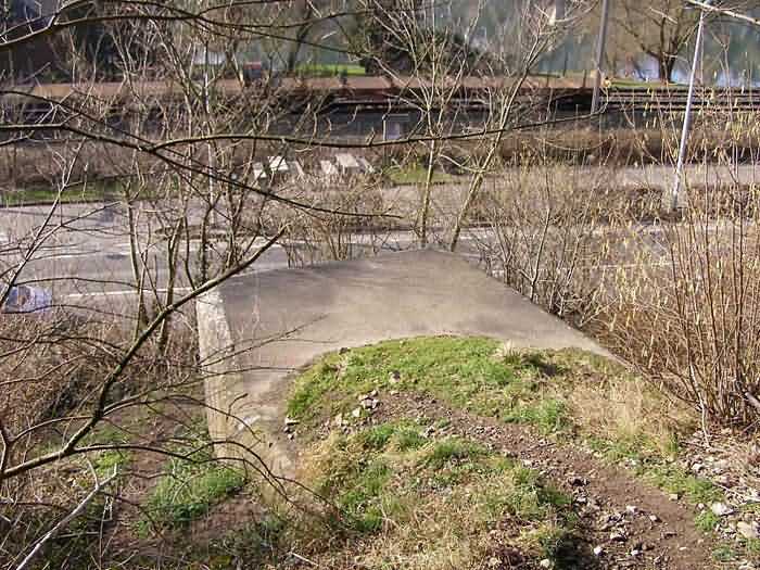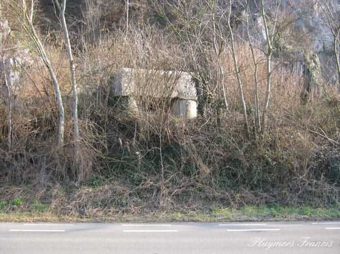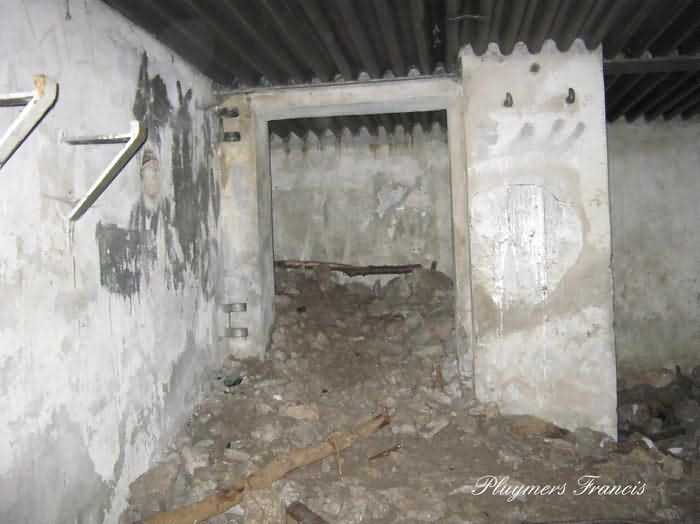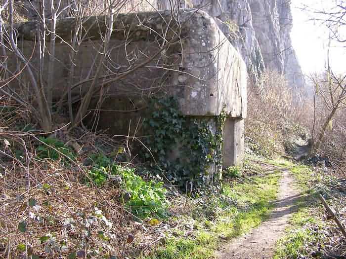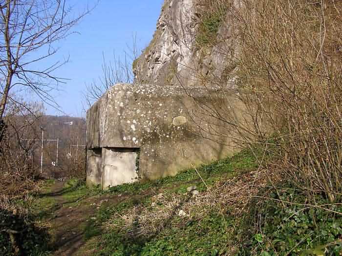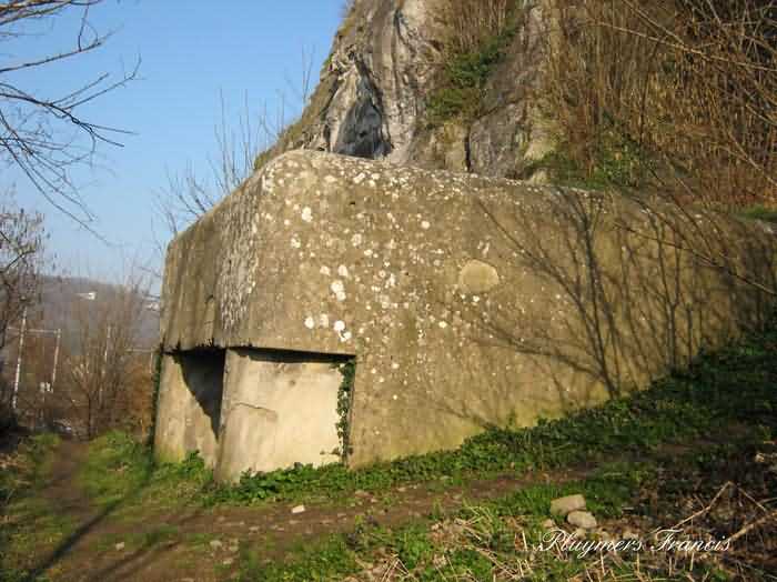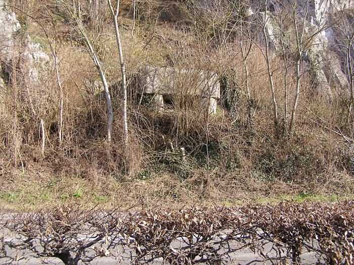 Fortified Position of Namur, Saint-Héribert - Dave interval, shelter 6d of Dave, 85 m/asl. Located on the banks of the Meuse, left bank, between the road and the rock face, to the right of the rock. It is an interval shelter with an embrasure for a machine gun or an anti-tank gun on a field mount. It still has a few hooks and its brackets for placing the shelves. Structural condition still quite acceptable. The interior of the structure is sound but the floor is strewn with various rubble and trash.