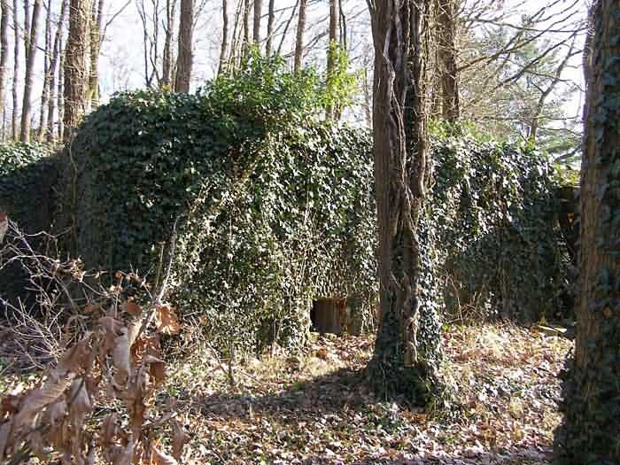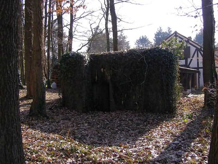 Fortified Position of Namur, Dave - Andoy interval, second line of resistance, shelter 3 of Erpent, 194 m/asl. Located in the park and on the axis of Rue des Verdiers in Erpent, entity of Namur, 220 m northeast of shelter DA 2 Erpent, it is a flanking interval shelter with one embrasure, protected by an orillon, probably for a machine gun, opposite the entrance, also protected by an orillon and giving access to a defensive airlock. All openings are walled up. Its structure still seems relatively well preserved.