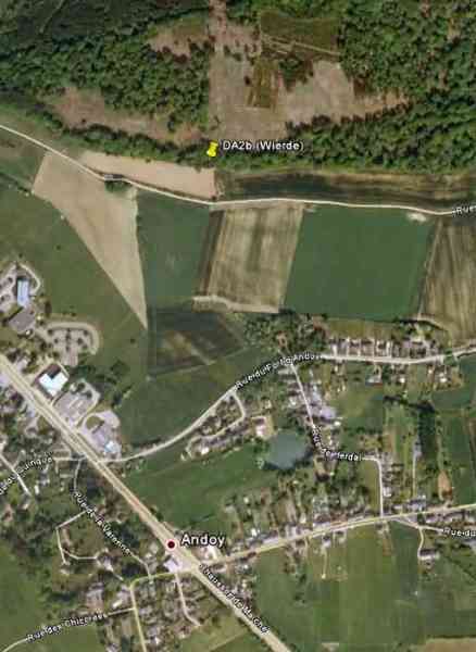 Opevněné postavení Namur, interval Dave - Andoy, druhá linie odporu, bunkr 2b ve Wierde, 178 m/n. m. Na jižním okraji Bois de l’Evêque a 70 metrů severně od ulice Rue des Balaives, jedná se o boční intervalový bunkr se střílnou pro kulomet na polní lafetě s trojnožkou a vchodem se vzduchovou komorou na protější straně. Oba jsou chráněny orilonem. Ve střelecké místnosti se nachází plošina pro umístění lafety zbraně a nouzový východ. Vchod a střílna jsou otevřené a interiér je čistý, ale bez jakéhokoli vybavení nebo kovových částí s výjimkou upevňovací poličky pro zásobník na nábojnice, což by spíše naznačovalo použití kulometu. Jeho konstrukce se zdá být stále relativně dobře zachovaná.