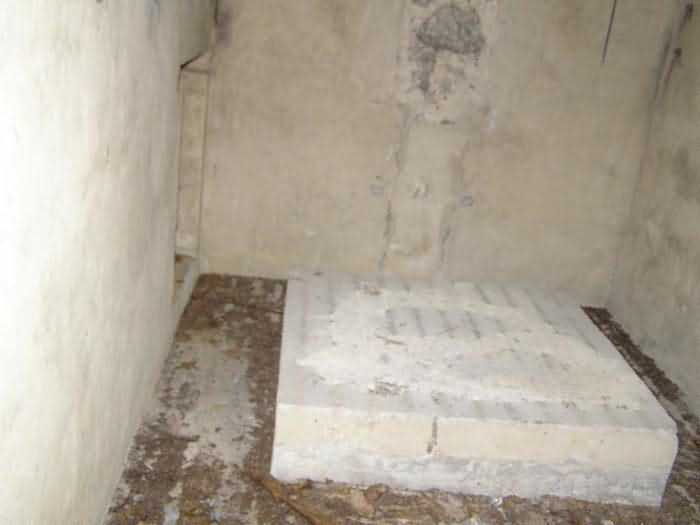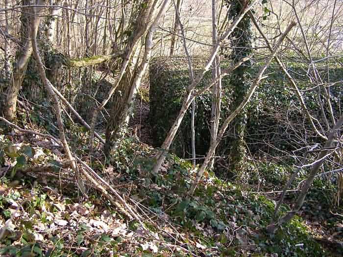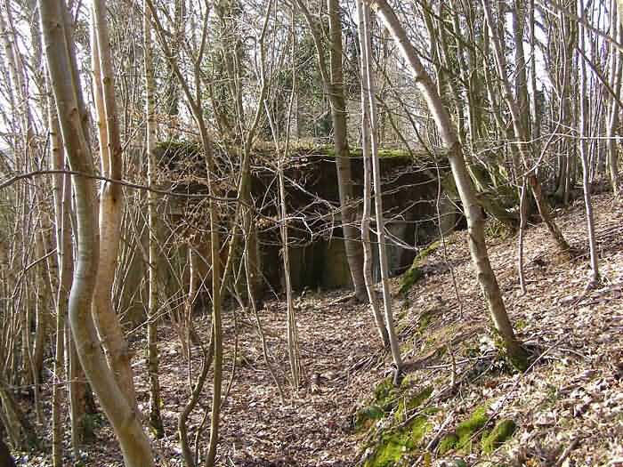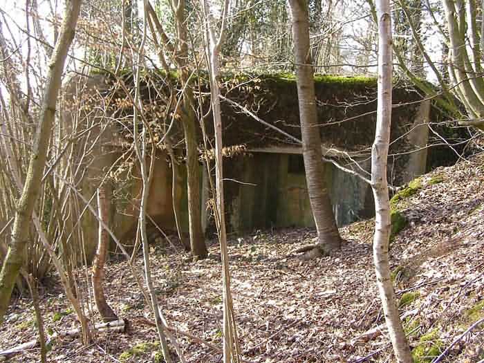 Fortified Position of Namur, Dave - Andoy interval, second line of resistance, shelter 2b of Wierde, 178 m/asl. On the southern edge of Bois de l’Evêque and 70 meters north of Rue des Balaives, it is a flanking interval shelter with an embrasure for a machine gun on a tripod field mount and an entrance with an airlock on the opposite side. Both are protected by an orillon. In the firing room there is a platform for mounting the gun mount and an emergency exit. The entrance and the embrasure are open and the interior is clean but devoid of any equipment or metal parts except for a fixing shelf for a cartridge hopper, which would rather indicate the use of a machine gun. Its structure still seems relatively well preserved.