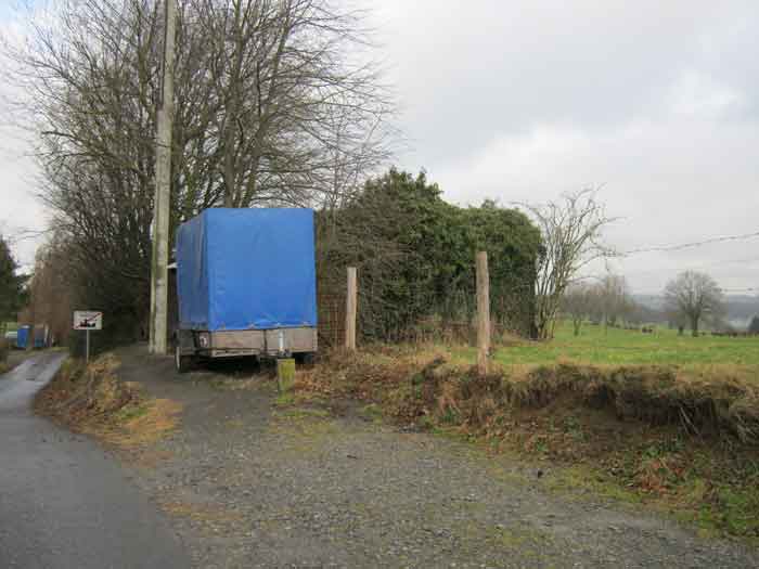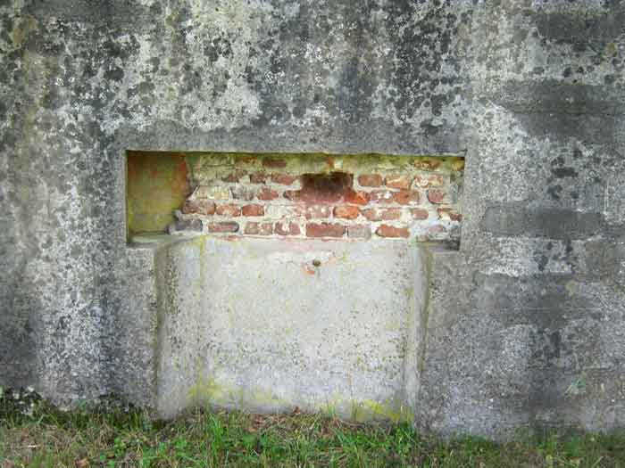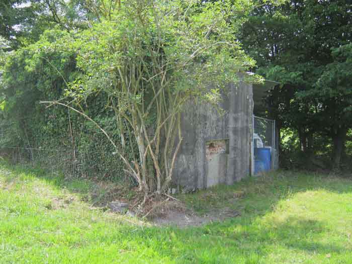 Belgian fortifications from the Second World War, fortified position of Liège, first line of resistance, shelters of the Margarins-Neufchâteau interval. MN 3 is located on the edge of the Miranze road, 200 m from the crossroads. It covered the Bois du Halleux sector. A workshop has been built on the entrance side and serves as a storage room. It's full. The embrasure is walled up. Chardôme mount. The entrance is open and incorporated into the workshop. MN 3 was to be camouflaged as a house; when looking at the foot of the structure on the embrasure side, a brick wall remains, the absence of a pivot for the embrasure shutter and traces of red colour in the splay of the embrasure, can allow us to say that its camouflage is original.