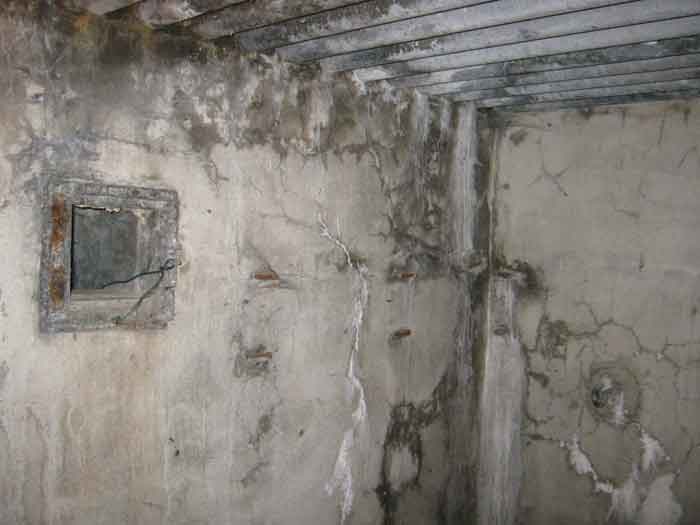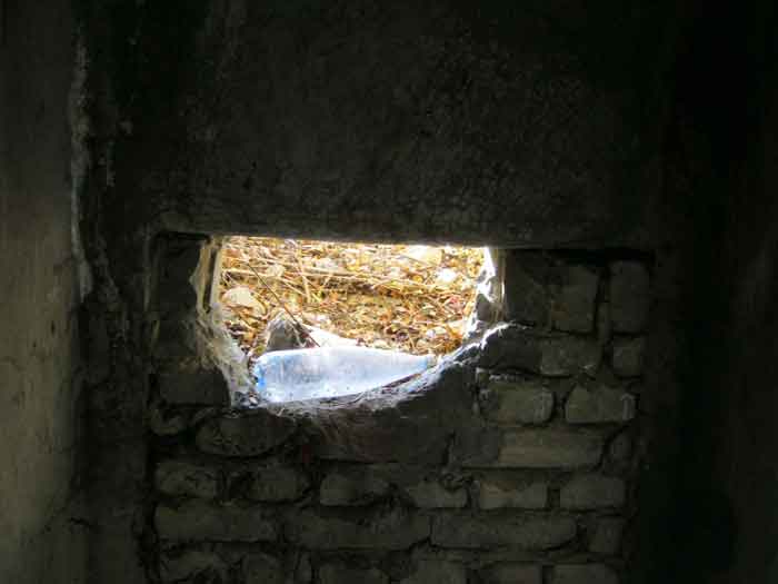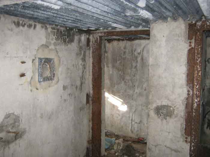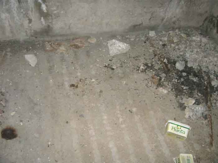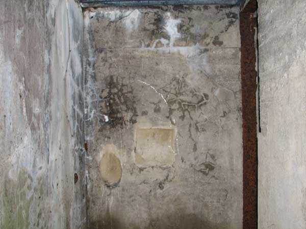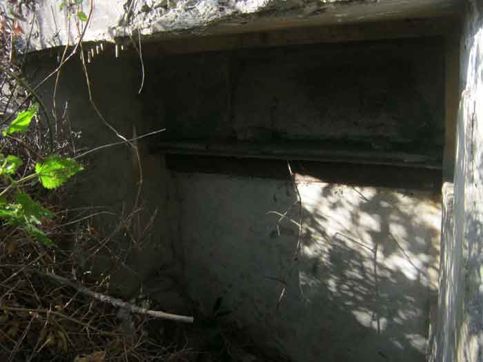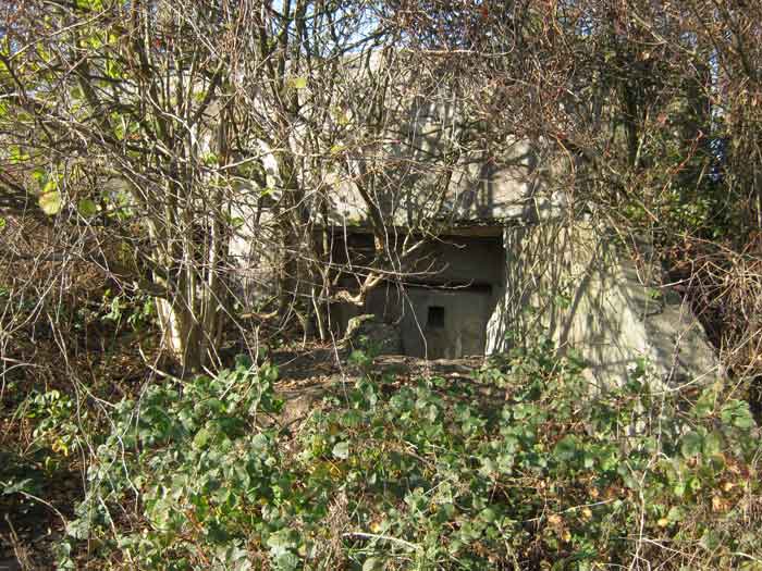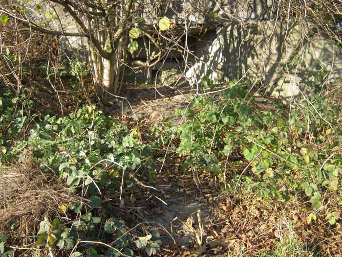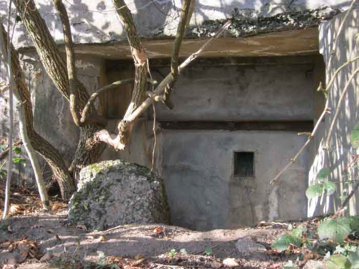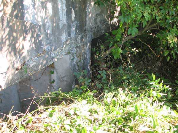 Belgian fortification of the Second World War, Fortified Position of Liège, advanced post of Magnée. Shelter Mg 4 is located at the end of Rue de la Carrière in the field on the left. This is the northernmost shelter of the FPL 2 type of the Magnée position. It was converted into an observation post for the fort of Fléron. It has a view ranging from the Carrefour supermarket in Fléron to the heights of Forêt via Ayneux. One of the firing chambers was converted into a relaxation room and fitted with a grenade launcher chute and an observation cupola, the other covered the old footpath coming from Bay Bonnet. Chardome mount, I saw no trace of the clay tray. The exterior, serving as a green waste dump, and the interior are in good condition. Some waste, such as an empty bottle, cans and a margarine tub, litter the floor. Most of the attachments have been cut off. Access to the shelter is very difficult, the opening is very narrow. I can say that this is one of the shelters I had the most difficulty getting out of (not recommended for stout persons). Its observation cupola was torn off by a scrap dealer who would have done better to do it elsewhere.