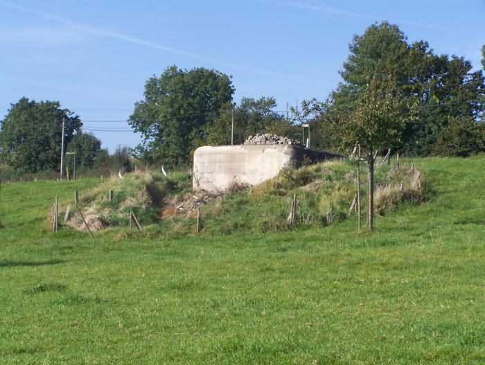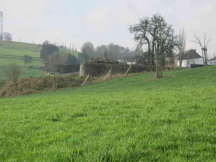 Belgische Festungen aus dem Zweiten Weltkrieg, verstärkte Stellung Lüttich, erste Widerstandslinie, Intervall Manaihant-Margarins, Unterstand MM 13. Äußerlich scheint er in gutem Zustand, es bleibt eine beträchtliche Anzahl von Betonzaunpfählen des militärischen Geländes, alle Öffnungen sind vermauert oder mit Brustwehr versehen und ein Steinhaufen behindert sein Dach (2009). Eine Öffnung wurde geschaffen und man entdeckt das Innere ohne Eingangsgitter P1 und ohne Lamellentür P2, aber die Metallkonsolen für die Holzregale, die Halterung für den Haken L1 für die Coleman-Lampe, ohne den Haken, die Haken L2 für die persönliche Ausrüstung des Personals, die Haken L3 für persönliche Waffen, das Tablett für den Munitionstrichter und seine Befestigungen sind vorhanden. Die FRC-Lafette wurde entfernt. Das Innere ist sauber und frei.