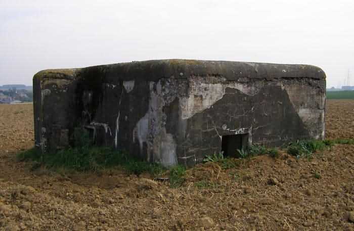 Belgian fortifications of the Second World War, fortified position of Namur, Marchovelette - Cognelée interval, second line of resistance, shelter MC 3 of Marchovelette, 188 m/asl. Located in open fields, Rue de la Chasse in Fernelmont, 80 m northwest of shelter MC 3 Fernelmont, it is a simple flanking interval shelter with an embrasure for a machine gun. In the facade opposite the shield is the entrance with an airlock defended by a firing loophole for a light machine gun without mount and a grenade chute, as well as the emergency exit communicating directly with the firing room. It seems to be in a correct state of preservation.