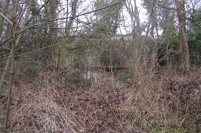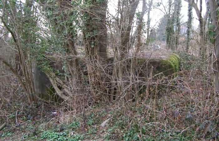 Fortified Position of Namur, Malonne - Saint-Héribert interval, shelter 4 of Malonne, 177 m/asl. Located at 75 Rue de la Chapelle Lessire, not far from the Chemin des Campagnes, under a clump of trees by the roadside. It is a shelter with an embrasure for a machine gun. It seems to have been replaced by an electrical substation.