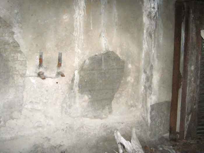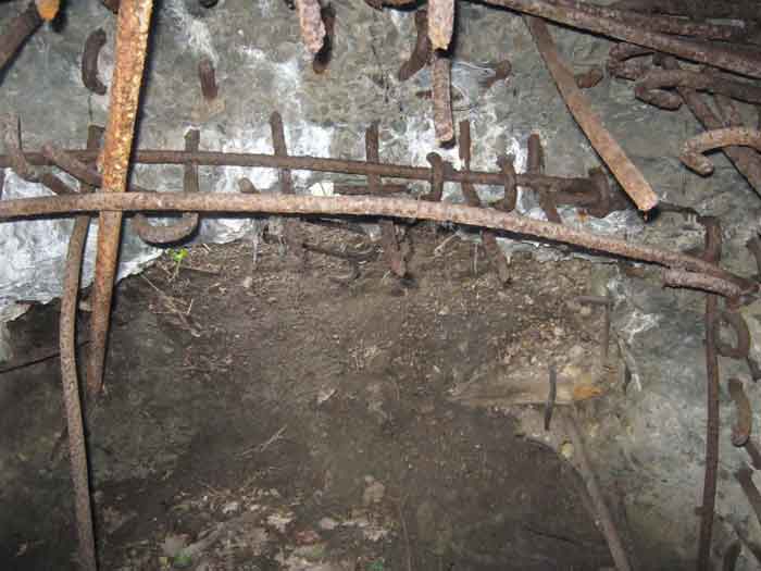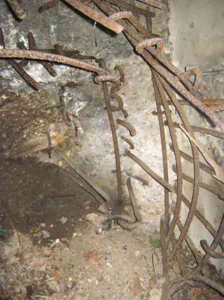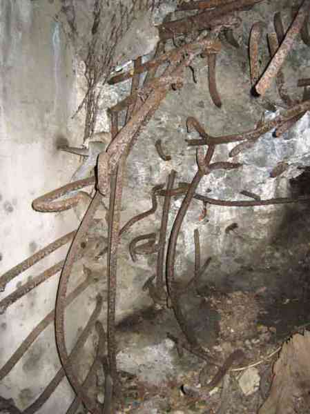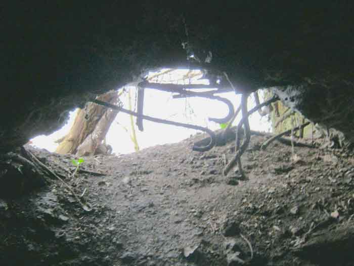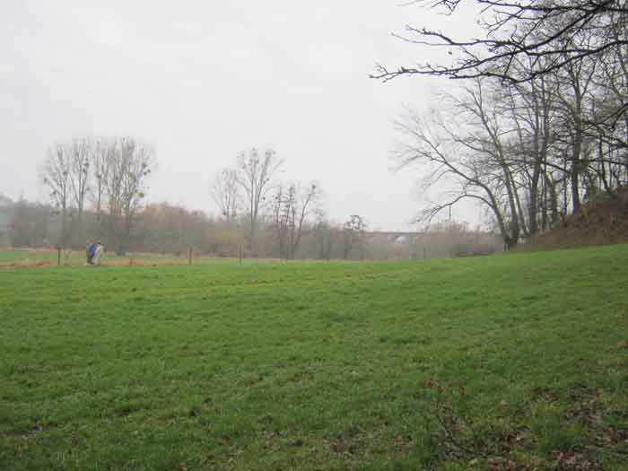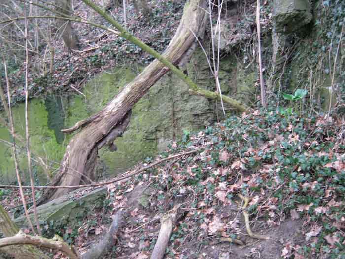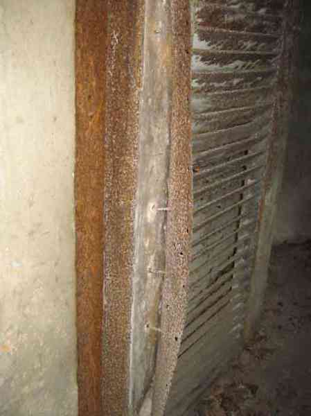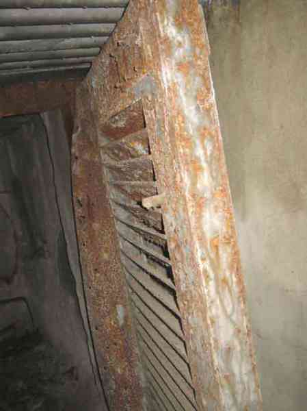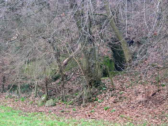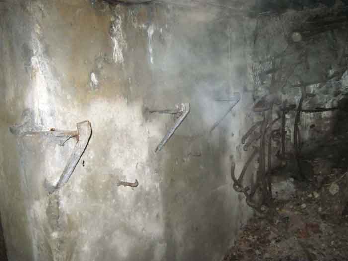 Belgian fortifications of the Second World War, fortified position of Liège, first resistance line, Neufchâteau-Visé interval, shelter NV10. NV 10 is located below the slope at the level of the Berwinne at the bottom of a meadow, 30 meters from a path. It covered the valley in the direction of the railway bridge. It crossed its fire with NV11 and NV12. It is partly buried with a cellar entrance. A retaining wall prevents the earth from collapsing in front of the embrasure. On the opposite side, an orillon has been built. The embrasure is totally destroyed and partly backfilled with earth. The entrance is accessible but one must lie down. The stairs are partly filled in. The interior is complete, the plate of the cartridge hopper is missing. The louvered door P2 is present. It is very difficult to determine which mount was installed due to the damage caused to the embrasure. No grenade launching chute. Some of the posts are still present.
