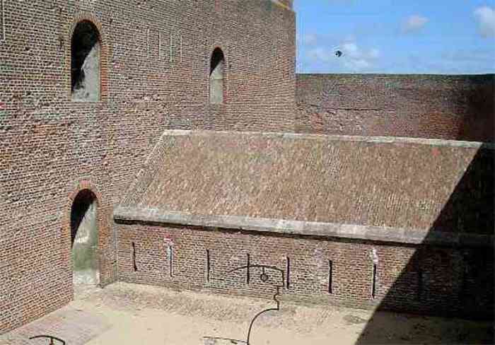 Der Bau des Forts begann 1810 auf Befehl Napoleons und wurde 1814 abgeschlossen. Es handelt sich um ein fünfeckiges Fort mit einem Trockengraben, das als rückwärtige Basis für die Invasion Englands dienen sollte. Es heißt Fort Impérial. Einige Schicksalsschläge führten dazu, dass Napoleon diesen Feldzug nie beginnen konnte, und das militärische Schicksal des Bauwerks endete, bevor es überhaupt begonnen hatte. Es wurde nacheinander von den Franzosen, den Engländern, den Holländern und dann den Deutschen besetzt und erlebte viele Vernachlässigungen, bevor es Teil des flämischen Erbes wurde. Die Franzosen nutzten es als Lager für ihre Bewaffnung bis zum Sturz Napoleons, dann wurde das Fort Teil des Königreichs der Niederlande unter Wilhelm I., der es in den Wellington-Gürtel einbezog, der das Königreich gegen Frankreich schützte. Es wurde in Fort William umbenannt und verfiel. Mit der Revolution von 1830 wurde das Bauwerk in Fort Napoléon umbenannt, und die belgische Neutralität ließ ihm seine verbliebene Bedeutung verlieren. 1865 verlor Ostende seinen Status als Festungsstadt, und 1883 wurde das Fort weitgehend zerstört. Erst mit dem Besatzer, 1915, fand es eine gewisse Nutzung als Offizierskasino, wobei die Offiziere einige Fresken hinterließen, von denen nur eine gerettet werden konnte und derzeit restauriert wird. Mit dem Abzug der Deutschen 1918 wurde das Fort erneut aufgegeben, und 1932 richtete die Gemeindeverwaltung der Stadt dort ein Heimatmuseum ein, das mit der Rückkehr der Deutschen 1940 verschwand. Während der Besatzung diente es zunächst als Unterkunft für deutsche Artilleristen, dann als Haftzentrum für Roma, die überall aufgegriffen wurden. Sie ließen dort praktisch alle ihr Leben. Gleichzeitig beendete der Besatzer den Bau der neuen Unterstände des Atlantikwalls aus Stahlbeton, weniger als hundert Meter vom Fort entfernt. Von den Alliierten vertrieben, hinterließen die Deutschen es erneut verlassen und mit einem traurigen Kreuz gezeichnet. Von 1949 bis 1956 diente es als Spielplatz für die Kinder der Nachbarschaft, dann versank es in Vergessenheit bis 1976, dem Jahr, in dem es als Denkmal eingestuft wurde, was seinen Verfall jedoch nicht verhinderte. Es musste bis 1996 warten, dem Jahr, in dem die Flämische Stiftung für Kulturerbe es unter ihre wohlwollende Fittiche nahm, um zu einem etwas ruhmreicheren Schicksal wiederzuerstehen.